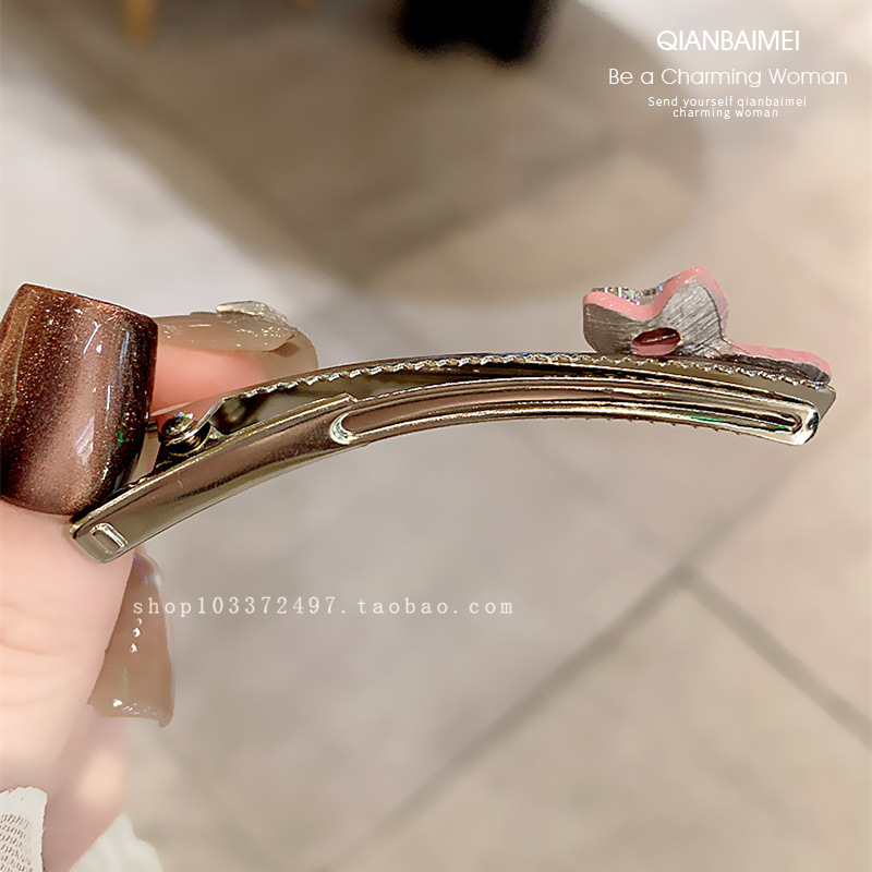 한국 편지 플래시 다이아몬드 뱅 사이드 클립 유약 디자인 센스 커브 덕빌 클립 올 매치 브로큰 헤어 클립 여성용 헤드웨어스토어 가기