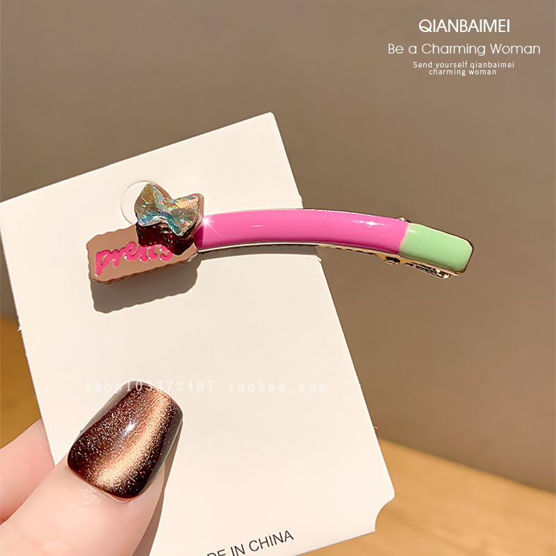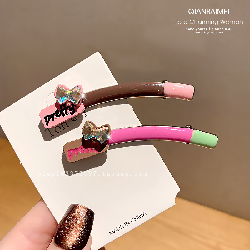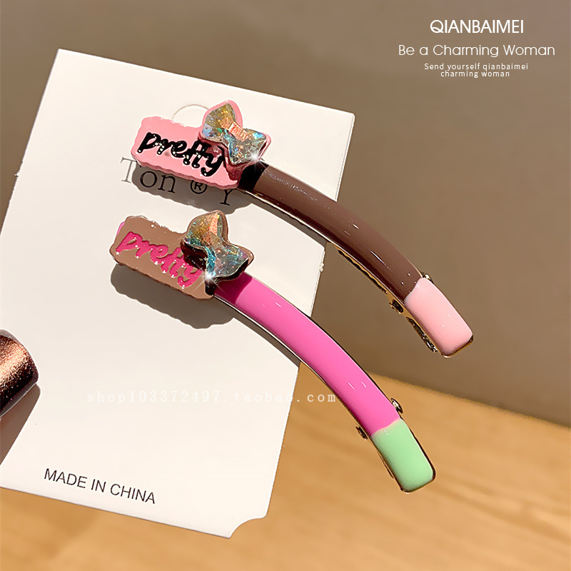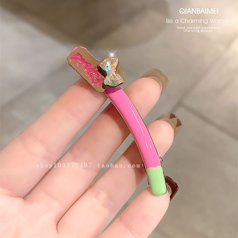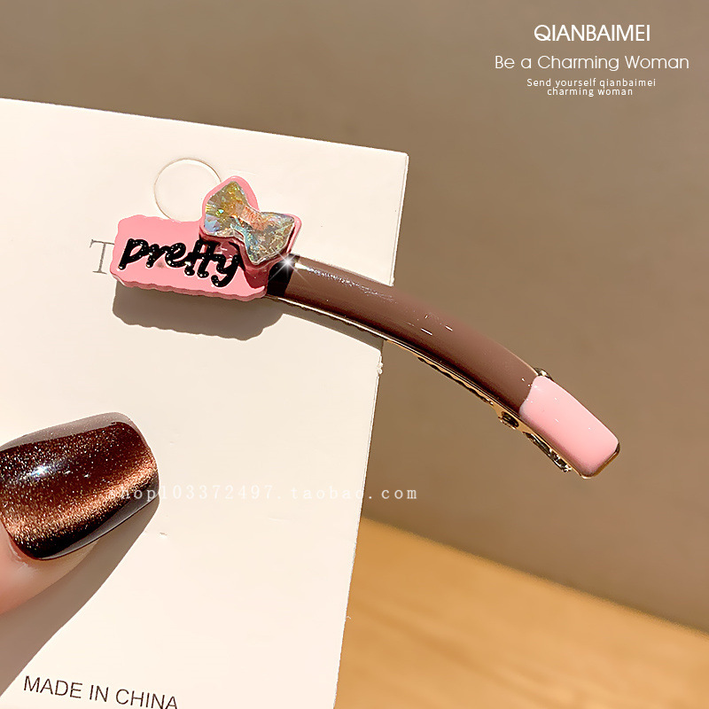 한국 편지 플래시 다이아몬드 뱅 사이드 클립 유약 디자인 센스 커브 덕빌 클립 올 매치 브로큰 헤어 클립 여성용 헤드웨어