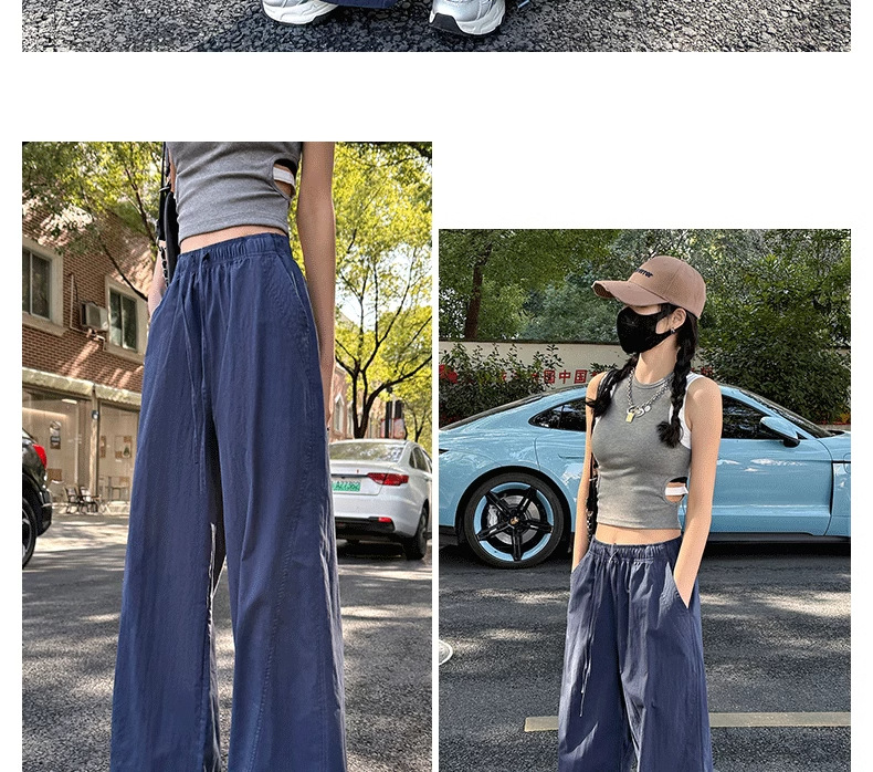 미국식 빠른 건조 작업복 여성용 여름 얇은 펜던트 스트레이트 레그 와이드 레그 팬츠 루즈 캐주얼 스포츠 등산 바지