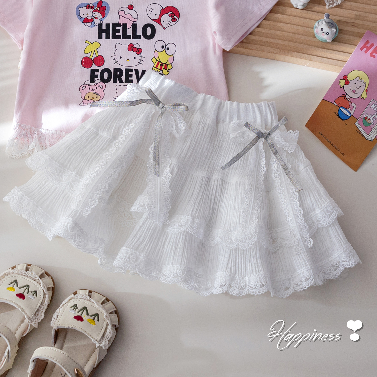 소녀의 새로운 2025 스커트 활 화이트 레이스 케이크 스커트 어린이 스커트 여름 올 매치 스커트