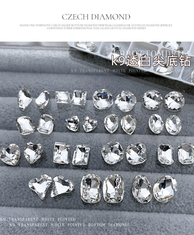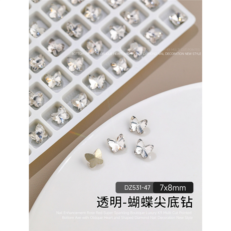네일 아트 다이아몬드 장식품 네일 아트 장식품 플래시 빅 다이아몬드 바닥 투명 네일 아트 드릴 k9 배치 플래시 화이트 다이아몬드 비뚤어진 심장 나비스토어 가기