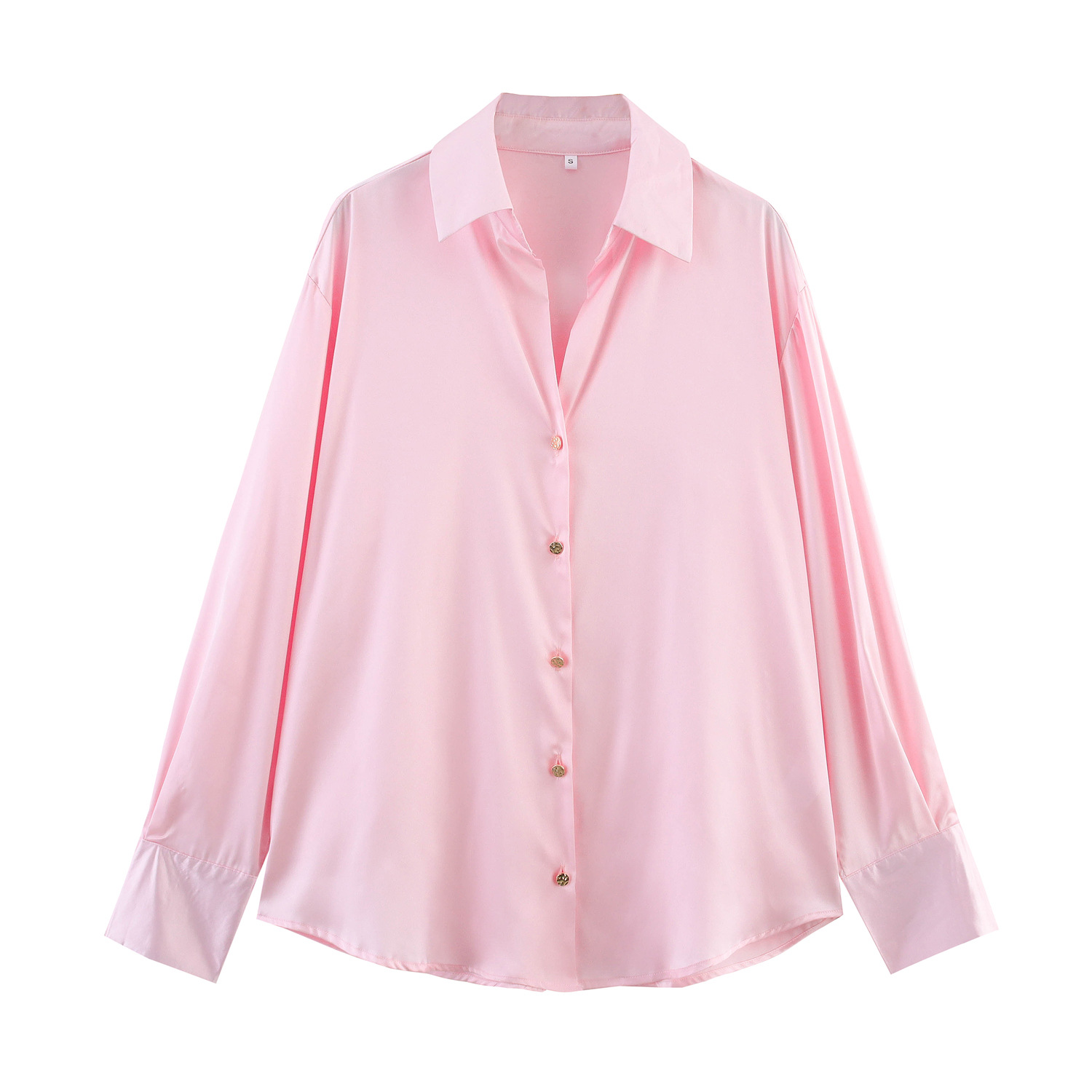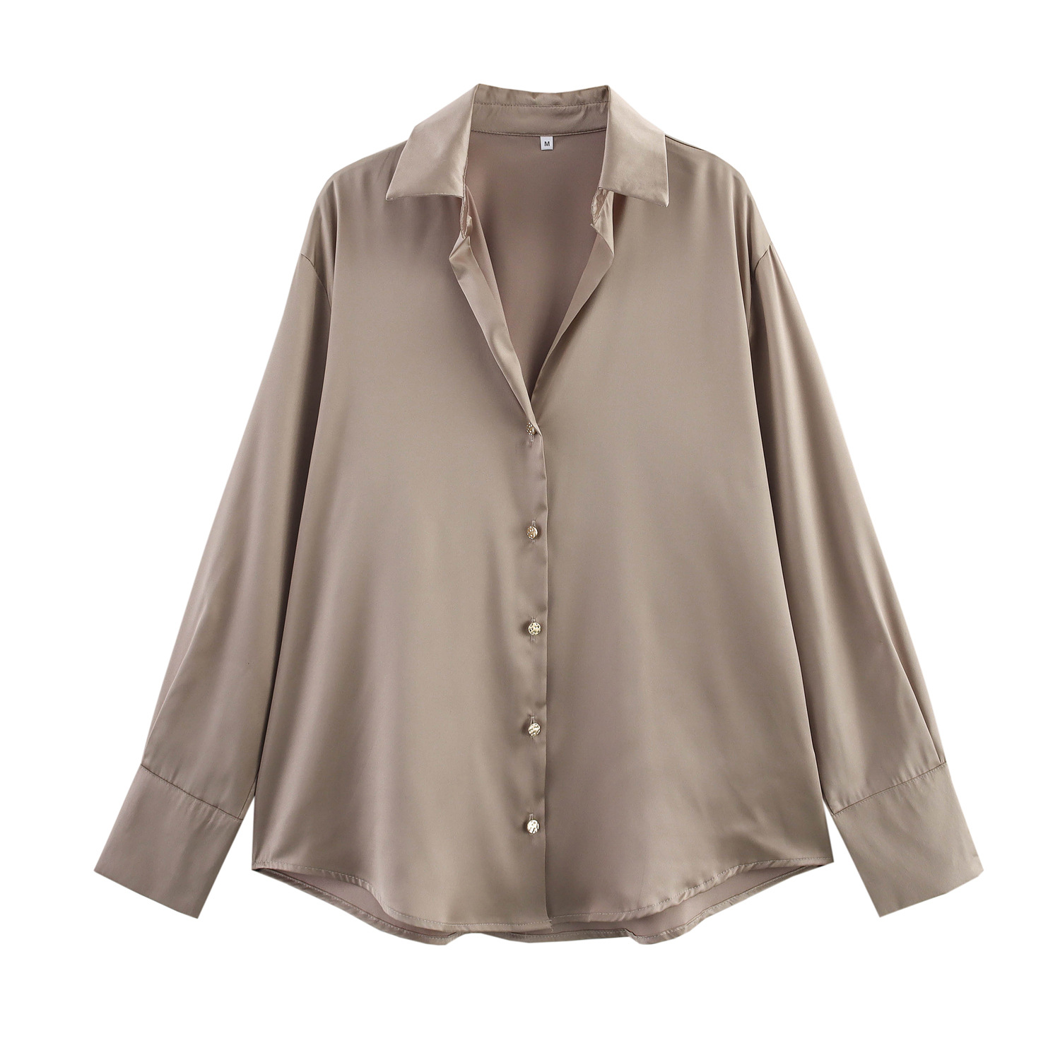 AliExpress 국경 간 도매 유럽과 미국 의류 2025 여름 새로운 멀티 컬러 다목적 실크 새틴 질감 솔리드 컬러 셔츠