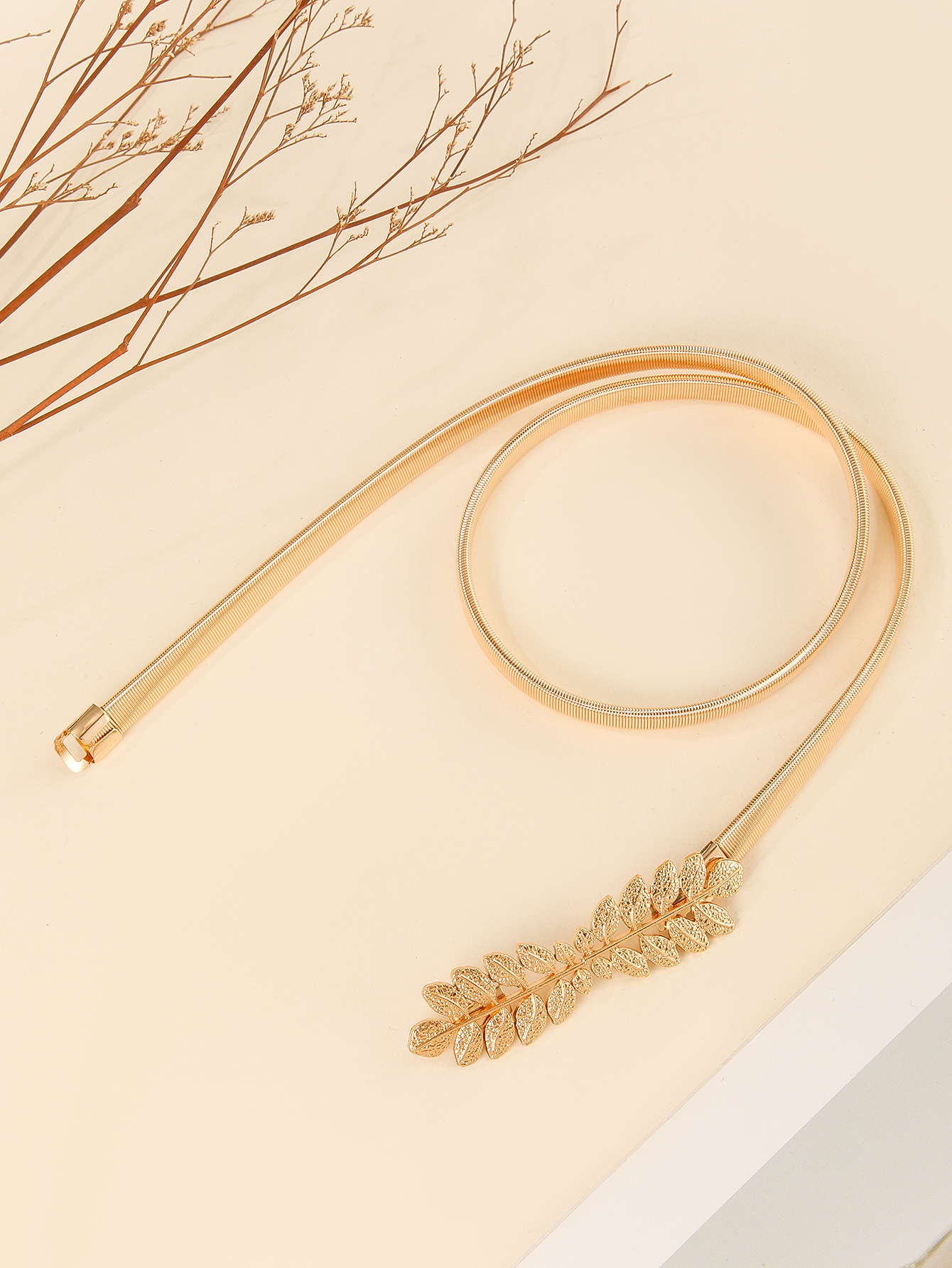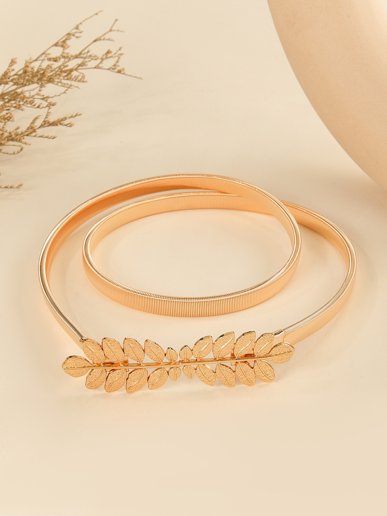 도매 새로운 잎 버클 얇은 허리 체인 한국 스타일 다목적 벨트 골드 탄성 허리띠 드레스 장식 탄성 트렌드스토어 가기