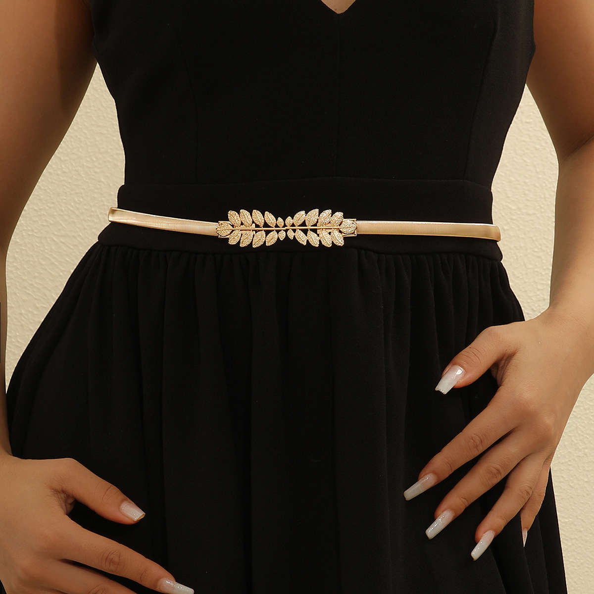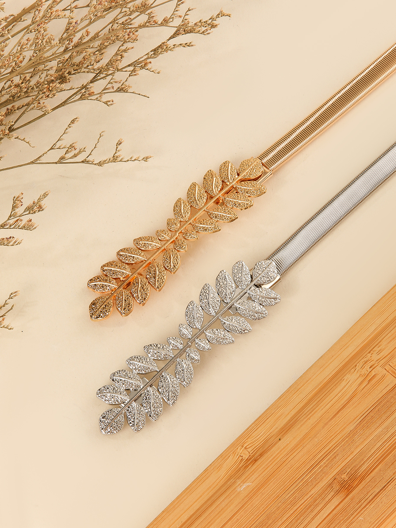 도매 새로운 잎 버클 얇은 허리 체인 한국 스타일 다목적 벨트 골드 탄성 허리띠 드레스 장식 탄성 트렌드