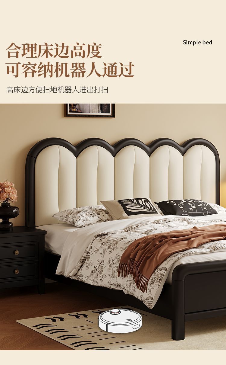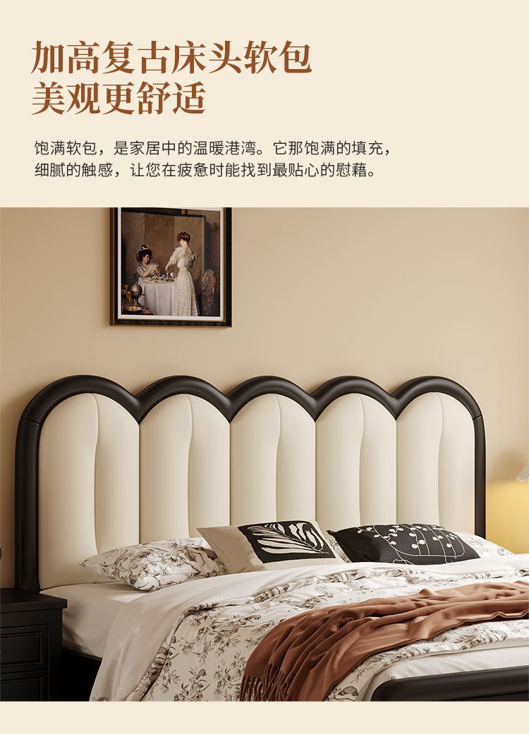 프렌치 크림 스타일 1.8m 원목 침대 마스터 침실 더블 침대 모던 심플 레트로 1.5m 하이박스 소프트백 웨딩 침대