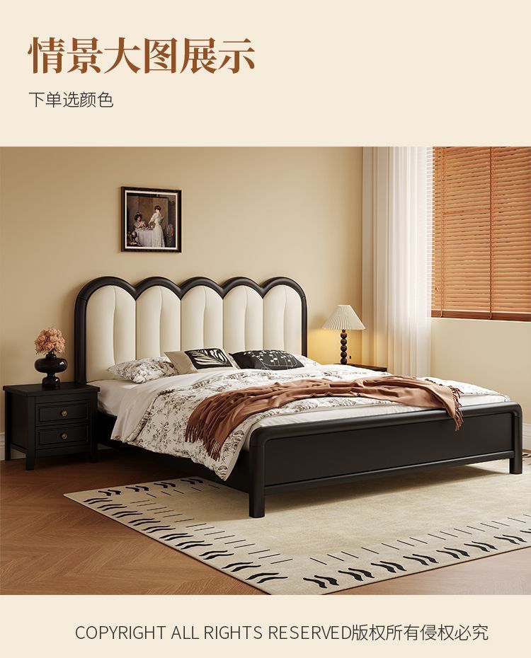 프렌치 크림 스타일 1.8m 원목 침대 마스터 침실 더블 침대 모던 심플 레트로 1.5m 하이박스 소프트백 웨딩 침대스토어 가기