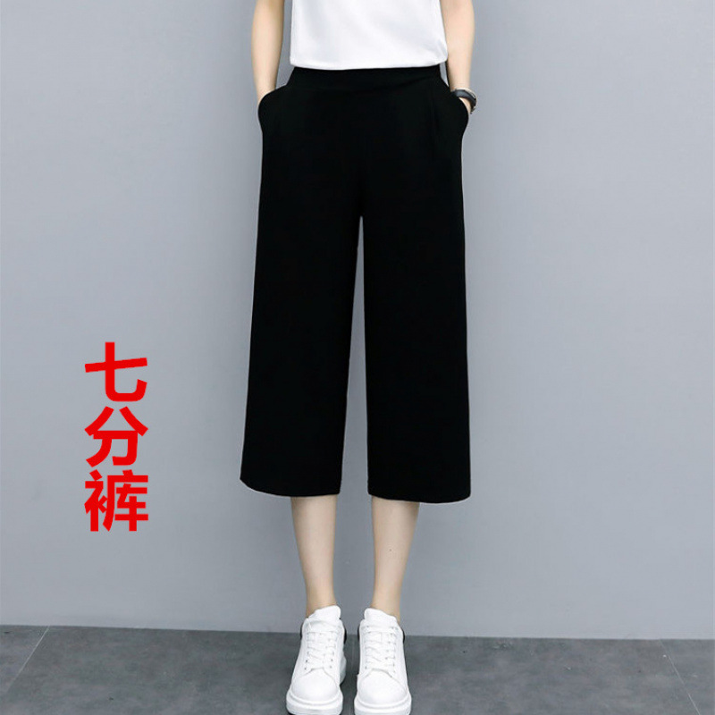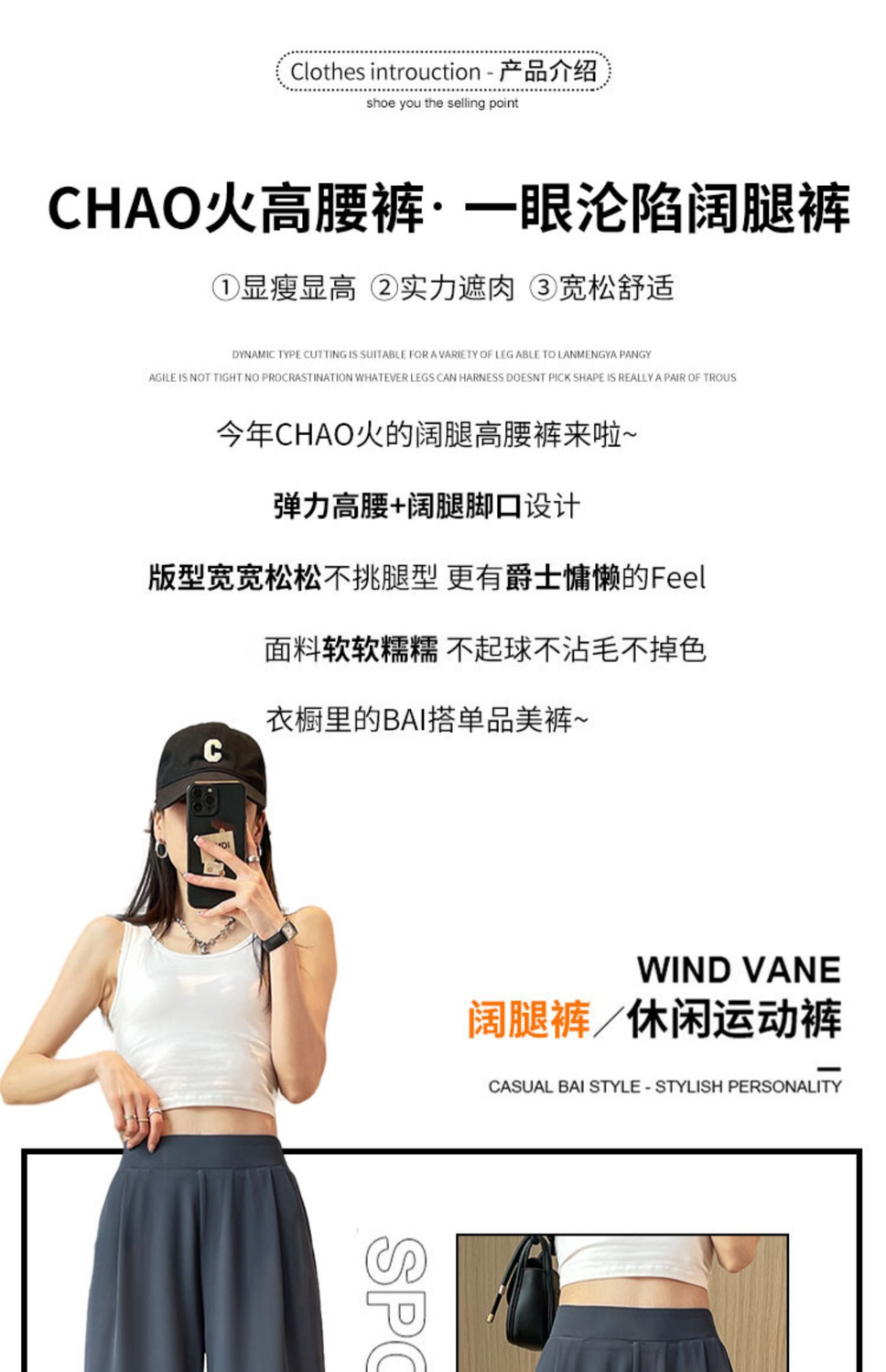 여자의 여름 새로운 높은 허리 더미 넓은 다리 바지 얇은 캐주얼 좁은 작은 여자의 유행 스트레이트 바지스토어 가기