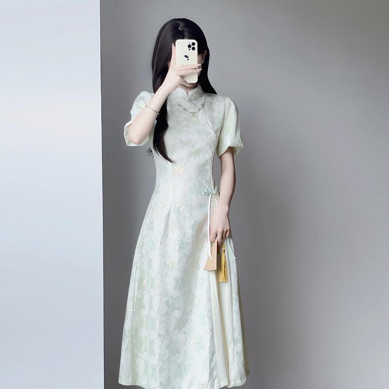 쑤저우 청삼 2025 봄/여름 새로운 스타일의 기질 개선 된 국가 스타일 원피스 새로운 중국 스타일 소녀 데일리 아오다이
