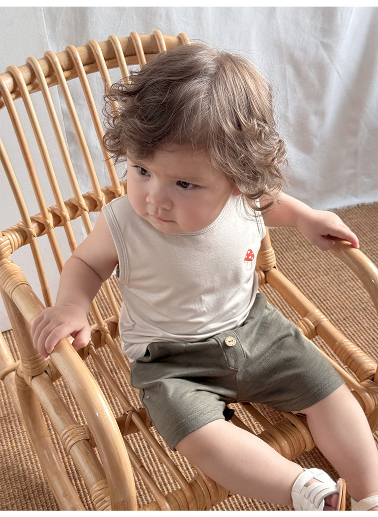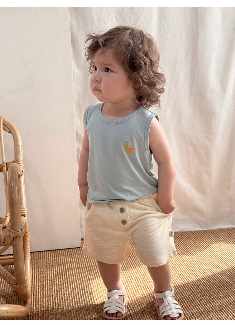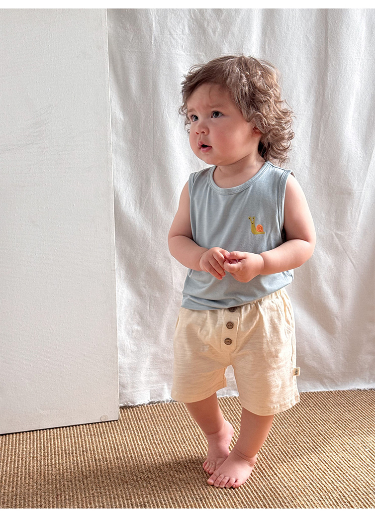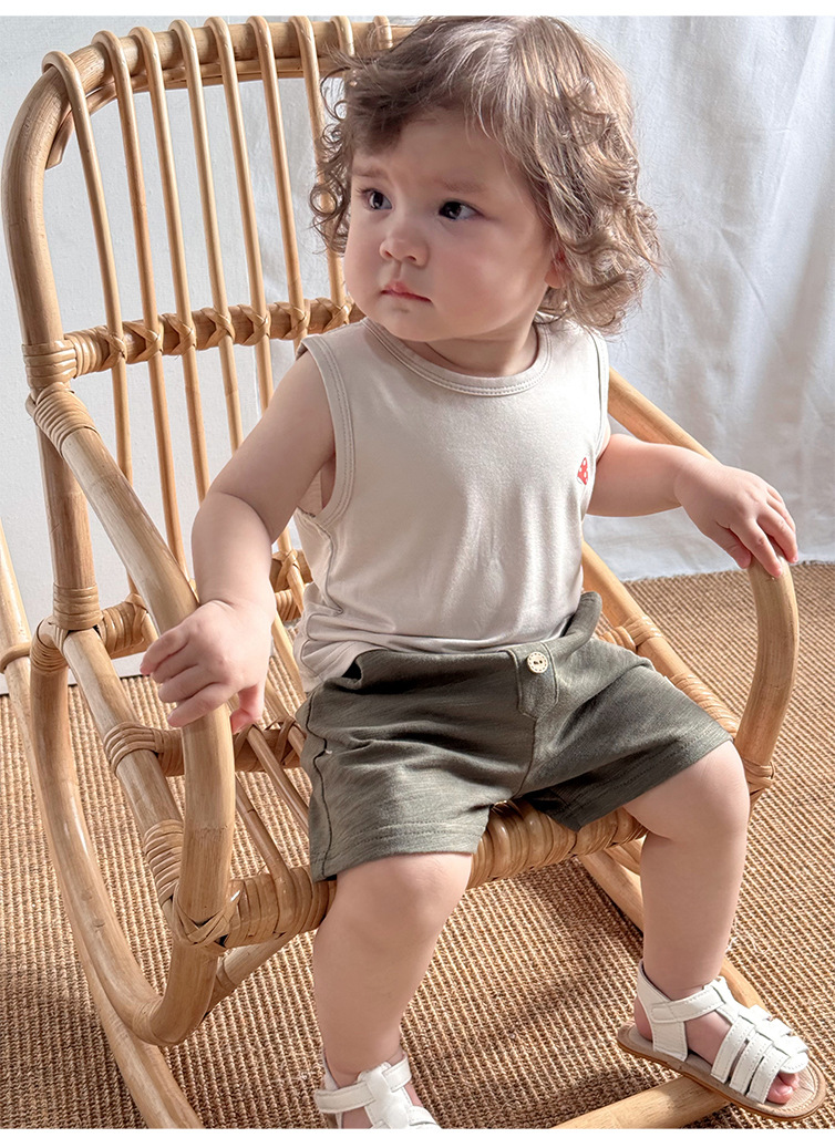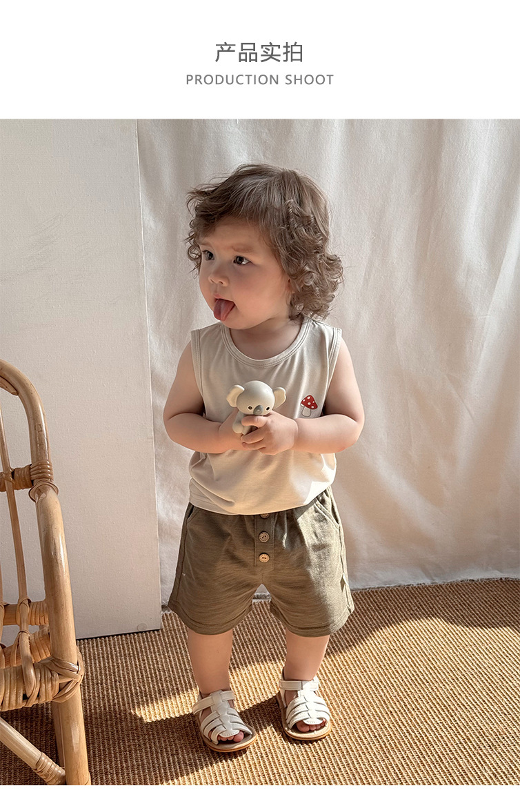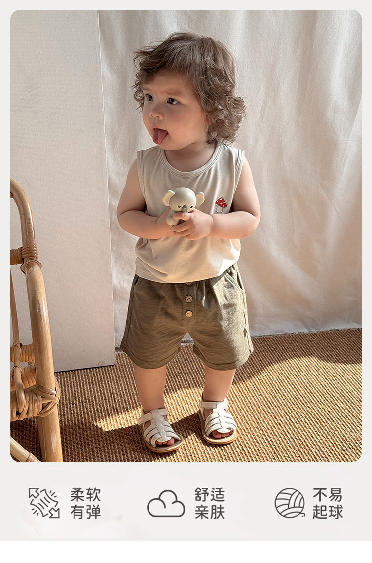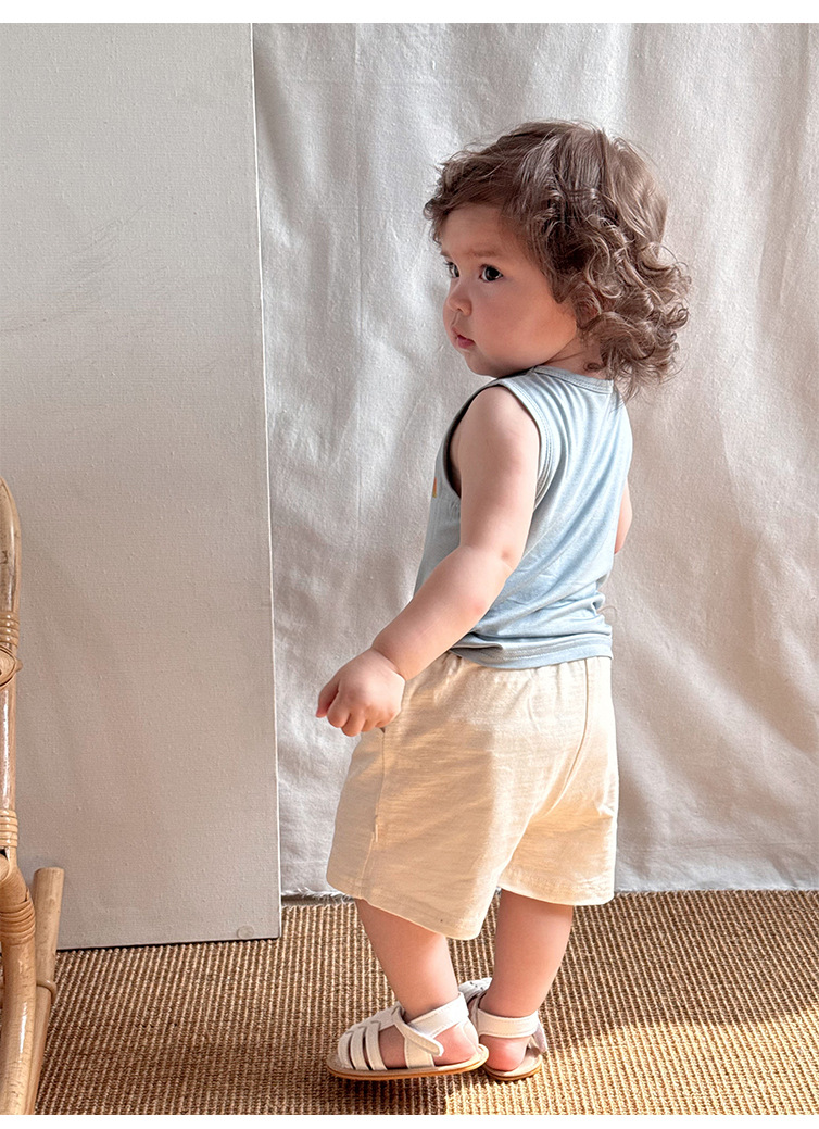 2025 아기 여름 새로운 순수 코튼 느슨한 소년과 소녀 아기 솔리드 컬러 서양식 반바지 어린이 바지스토어 가기