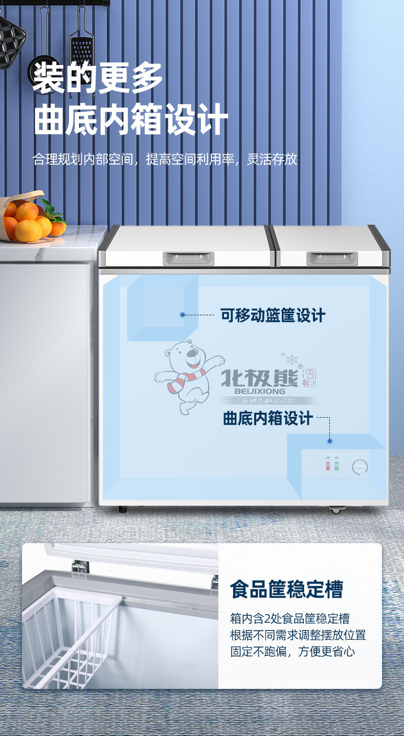 북극곰 소형 냉동고 가정용 냉동고 소형 양문형 이중 온도 냉동고 상업용 임대 냉장고 냉동 냉장 특가스토어 가기