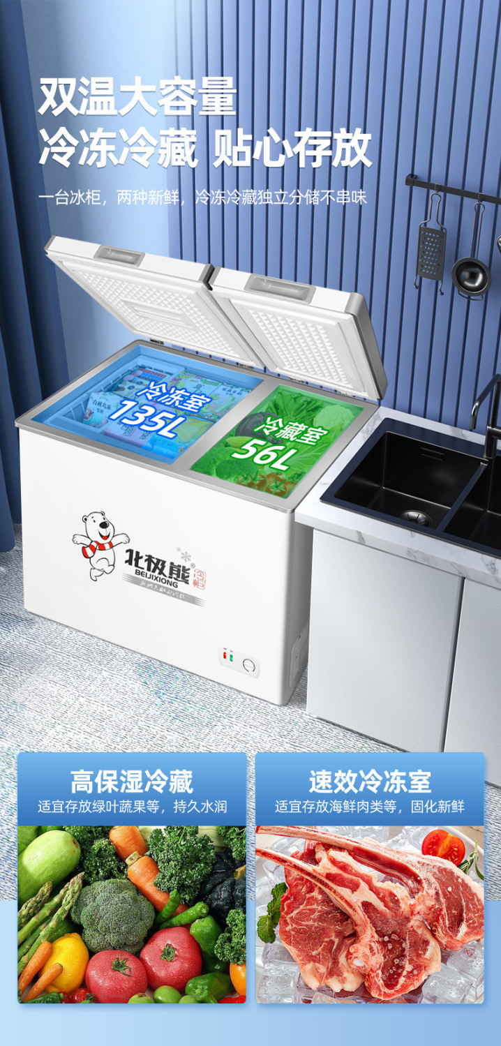 북극곰 소형 냉동고 가정용 냉동고 소형 양문형 이중 온도 냉동고 상업용 임대 냉장고 냉동 냉장 특가