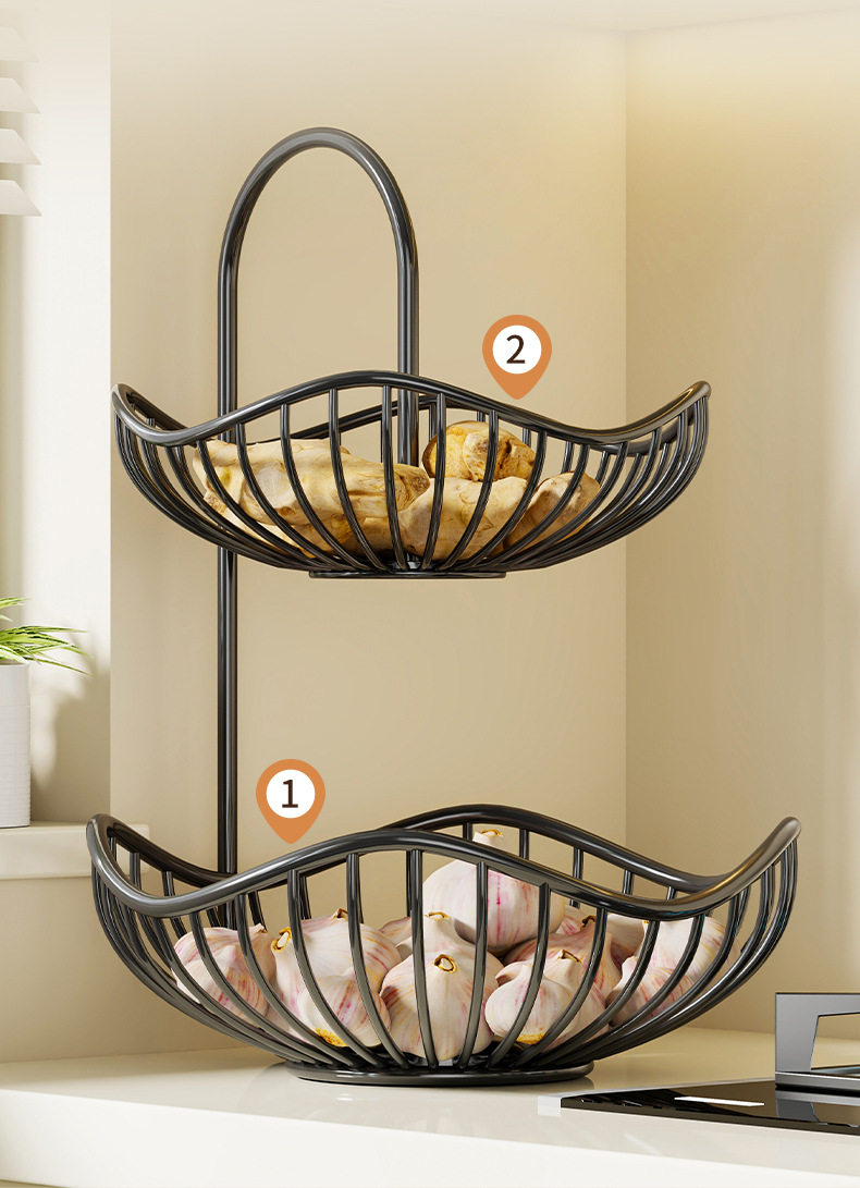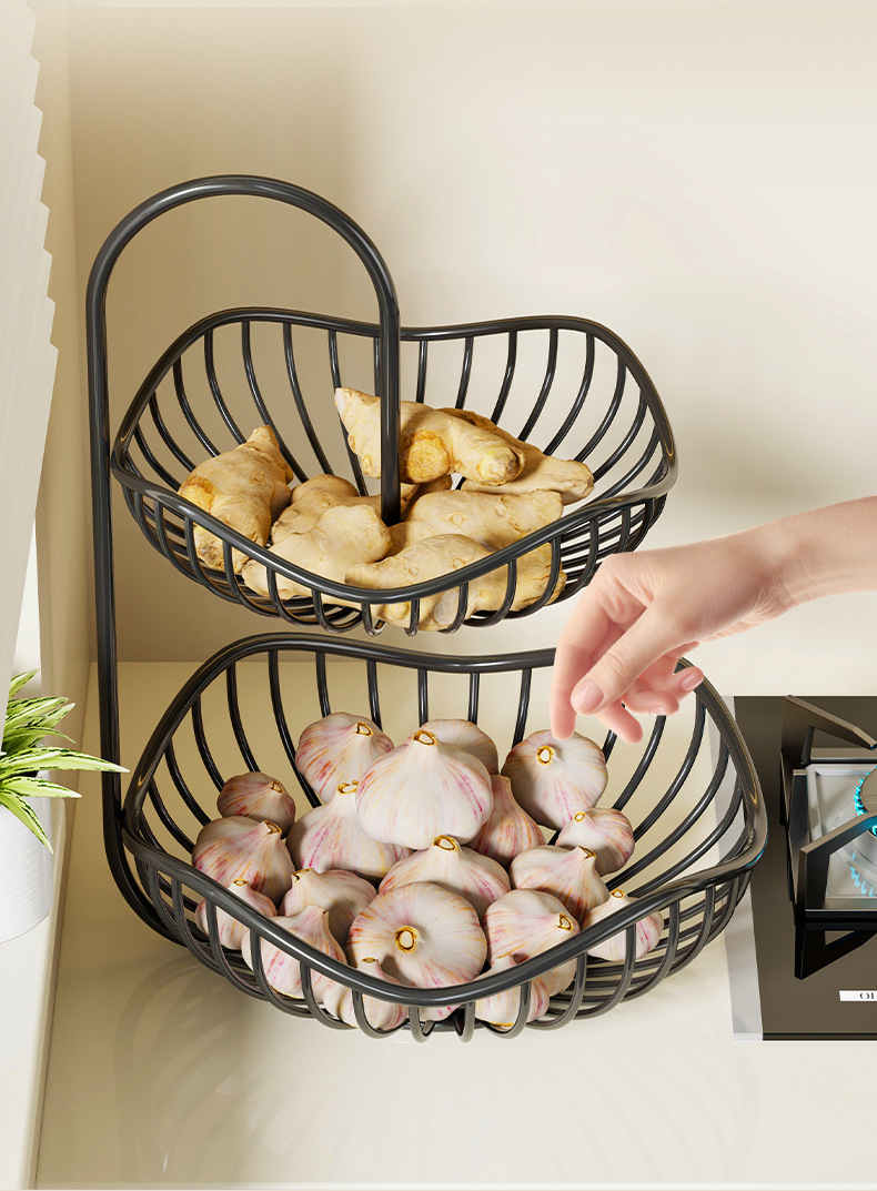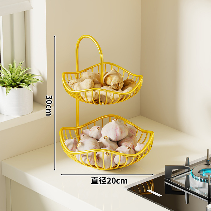 주방 조리대 야채 보관함 이중 야채 바구니 보관함 데스크탑 스토브 양파 생강 마늘 과일 선반
