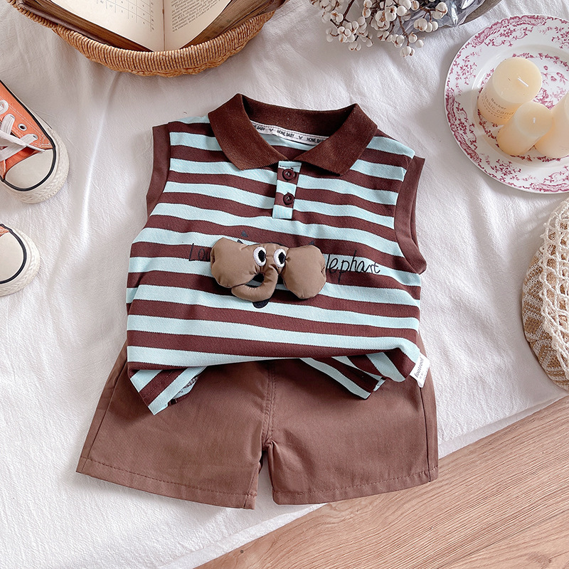 2025 년 여름 새 소년 세트 코끼리 옷깃 민소매 세트 한국 조끼 여름 투피스 세트 세대 헤어