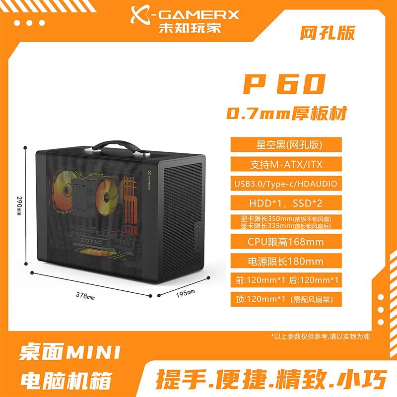 알려지지 않은 플레이어 P40 메쉬 휴대용 ITX 데스크탑 MATX 컴팩트 게임용 컴퓨터 케이스스토어 가기