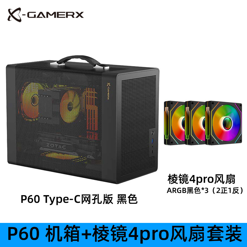 • P60 Type-C 메시 버전 검정색 + 프리즘 4pro 팬*3(전면 2개, 후면 1개)