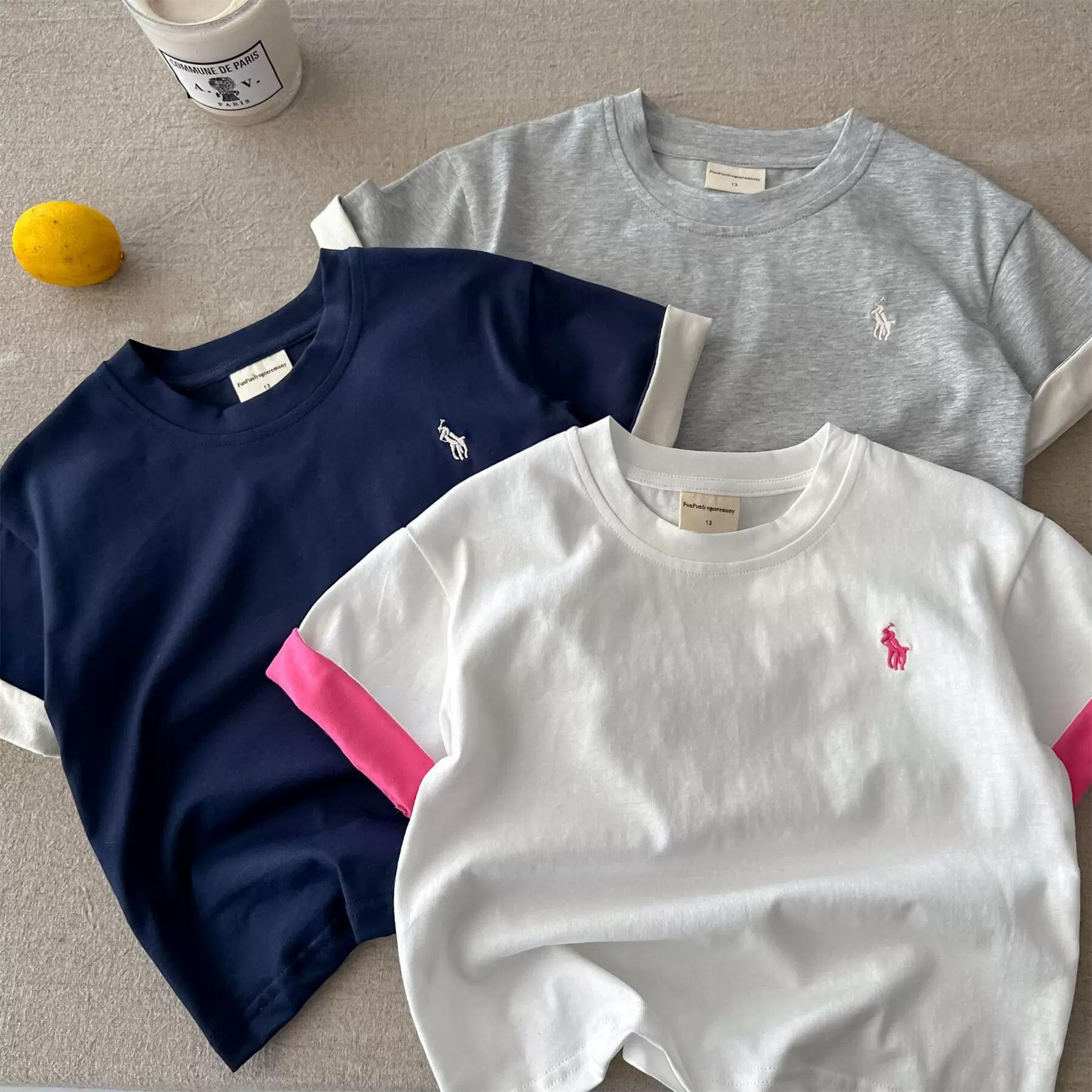 어린이 반소매 2025 여름 소년 일본 포니 라벨 명암 T 아기 어린이 면화 반소매 여자 서양식 티셔츠스토어 가기