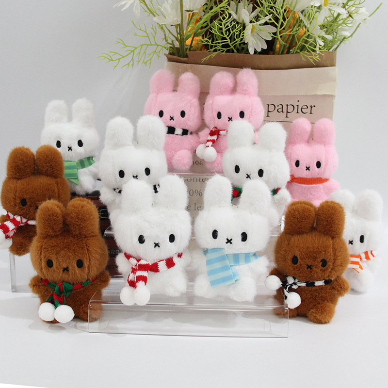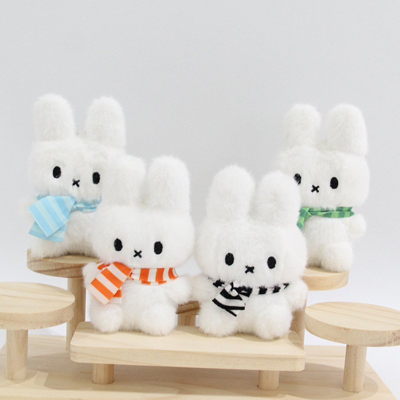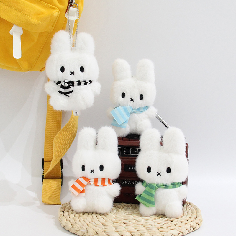 만화 귀여운 줄무늬 스카프 토끼 펜던트 귀여운 미피 토끼 가방 키 체인 펜던트 인형 선물스토어 가기