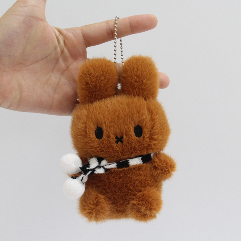 만화 귀여운 줄무늬 스카프 토끼 펜던트 귀여운 미피 토끼 가방 키 체인 펜던트 인형 선물