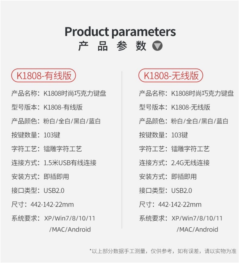 • 핑크와 화이트 [무선 키보드] 3개 구역 무료 필름 없음