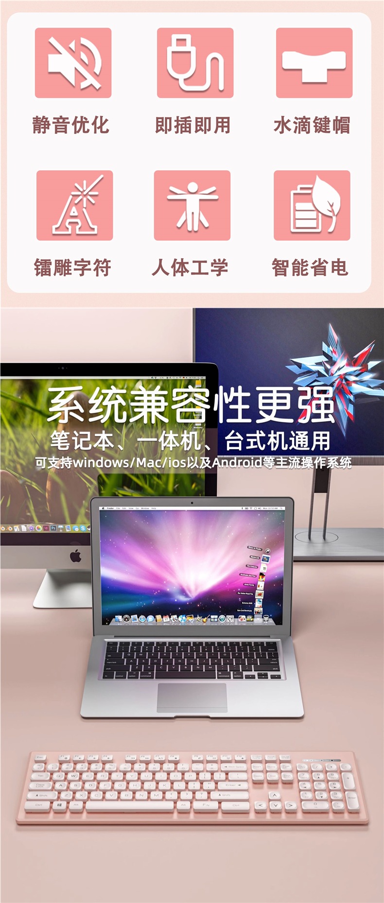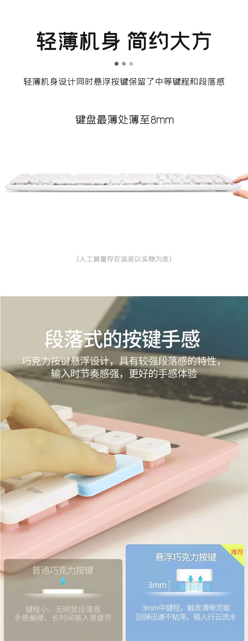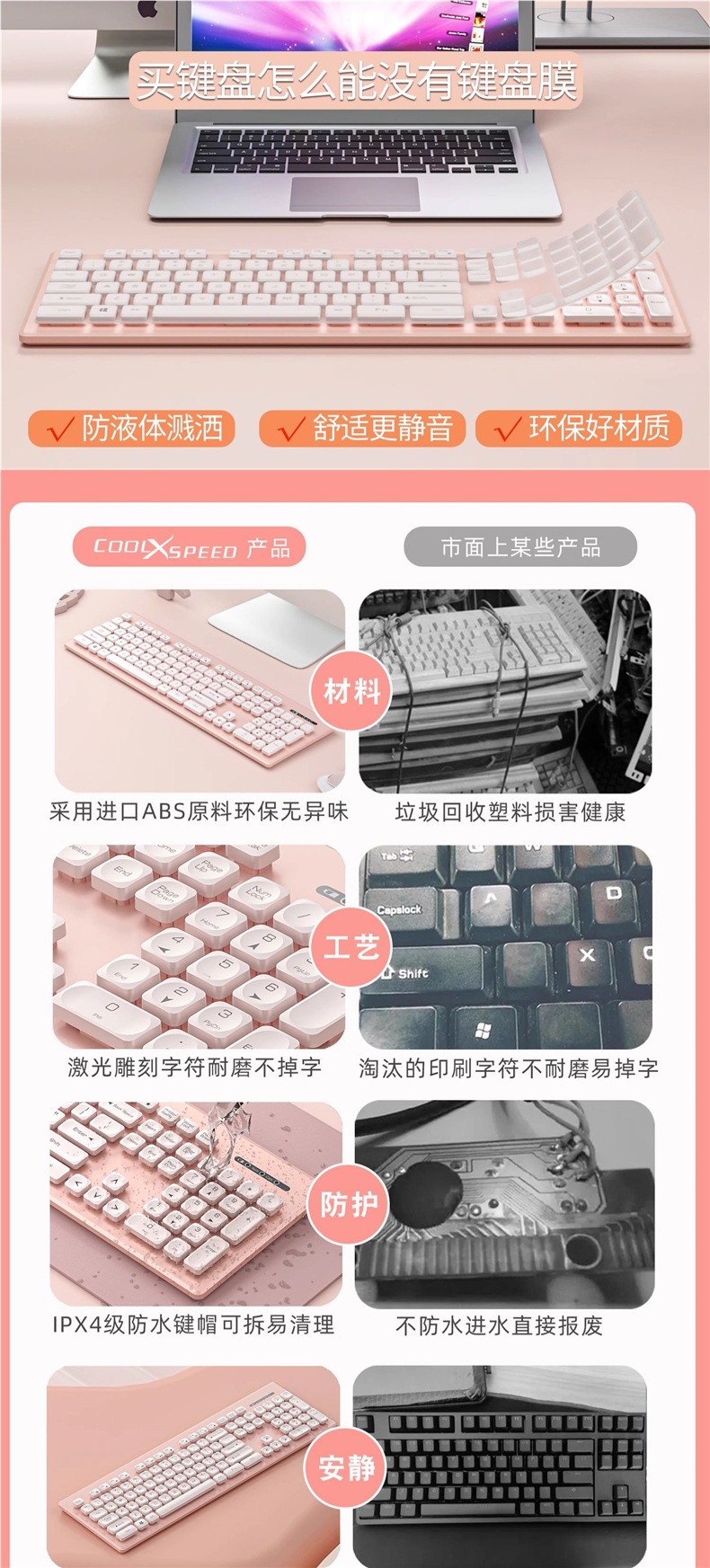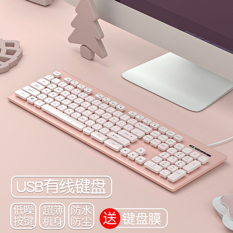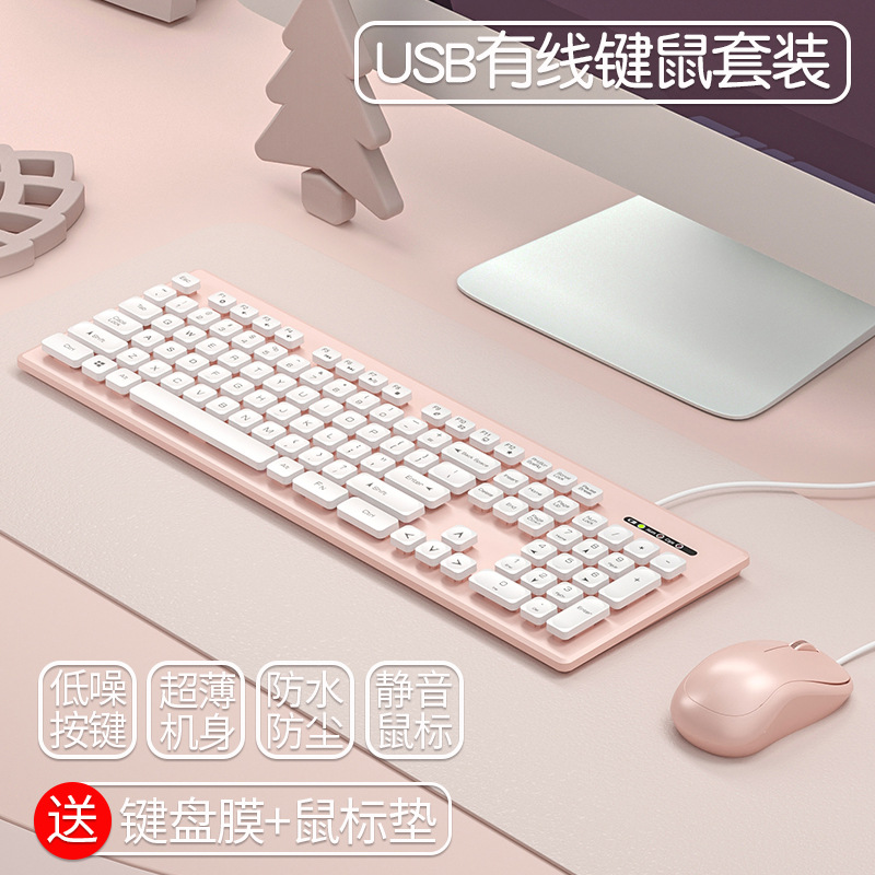 • 핑크와 화이트 [유선 키보드 및 마우스 세트] 3존 무음 마우스(무료 필름 포함) - 아니요