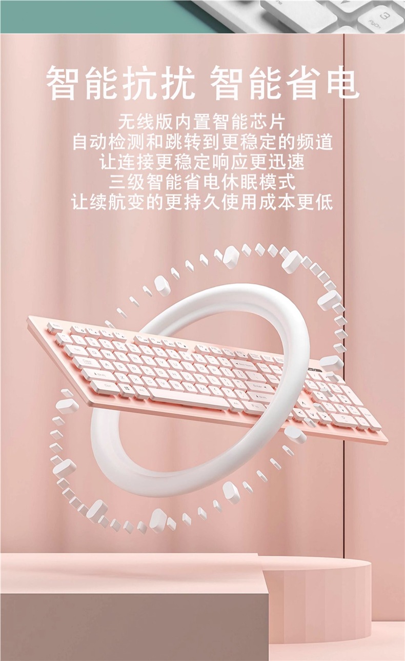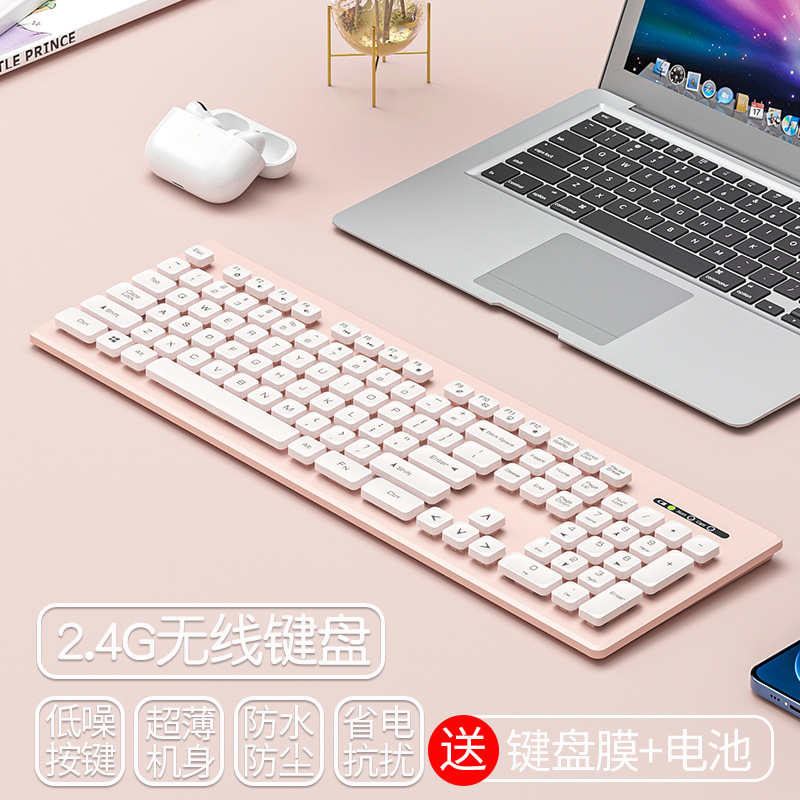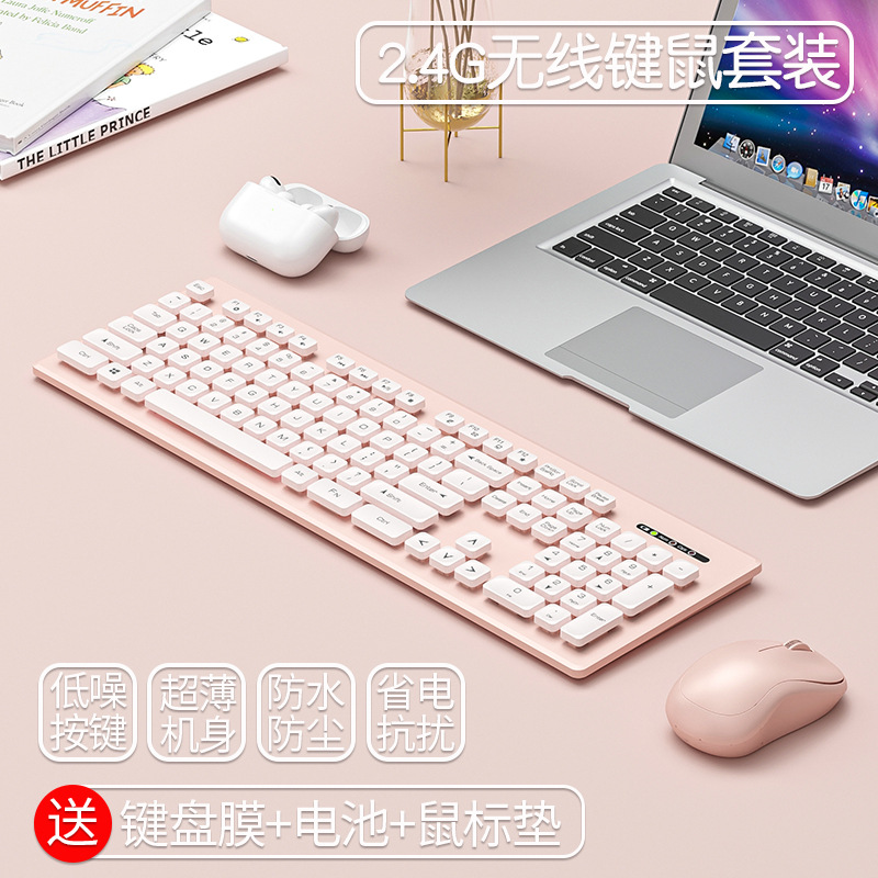 • 핑크와 화이트 [무선 키보드 및 마우스 세트] 3존 무소음 마우스 배터리 버전(무료 필름 포함) - 없음