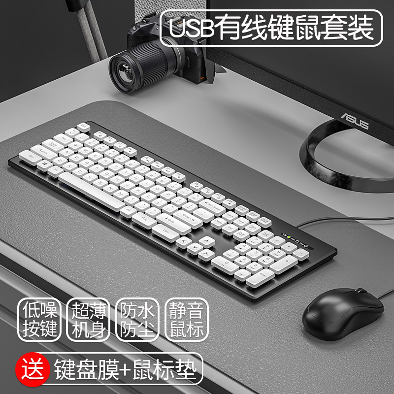 • 흑백 [유선 키보드 및 마우스 세트] 3존 무음 마우스(필름 없음)