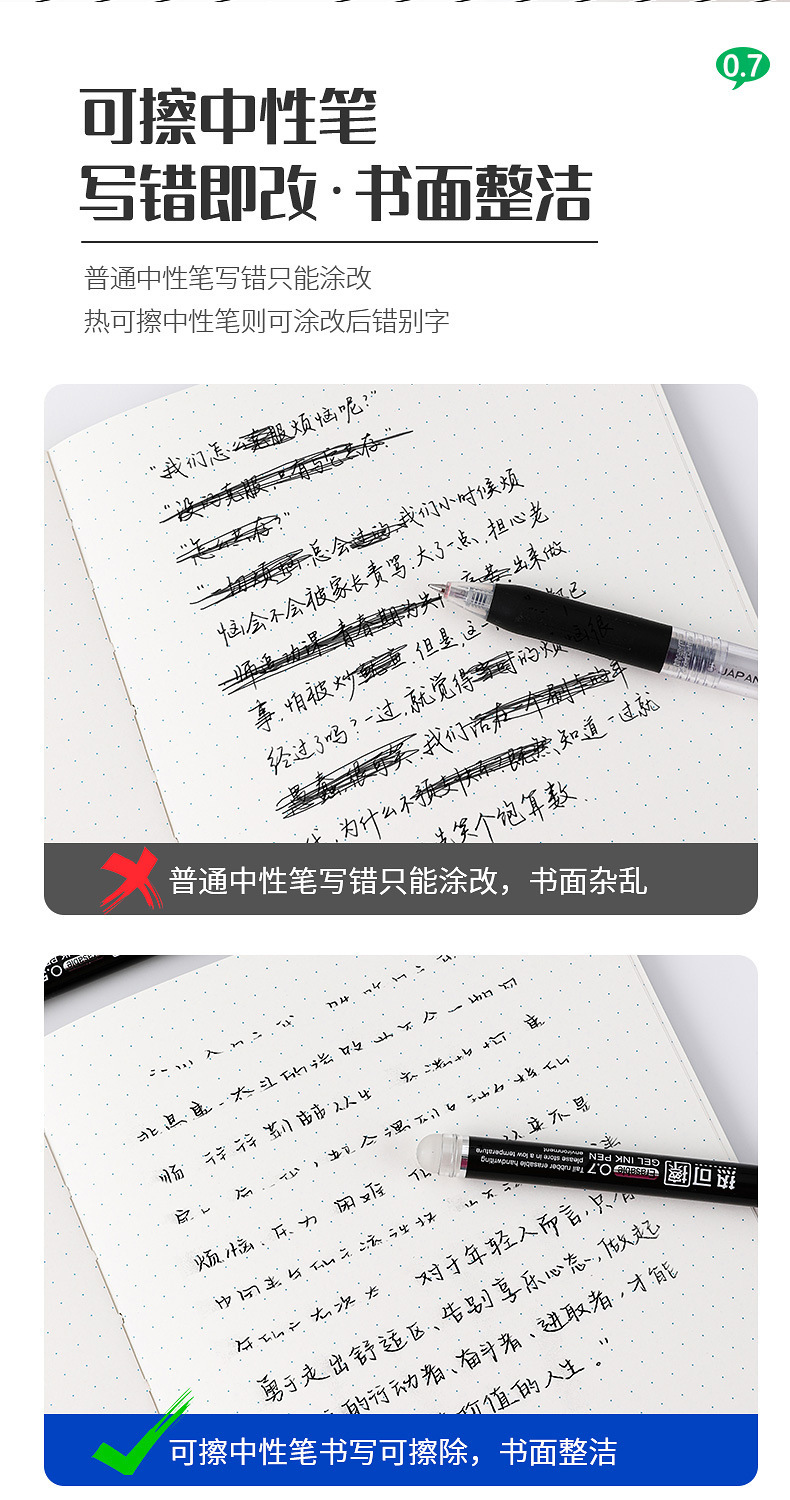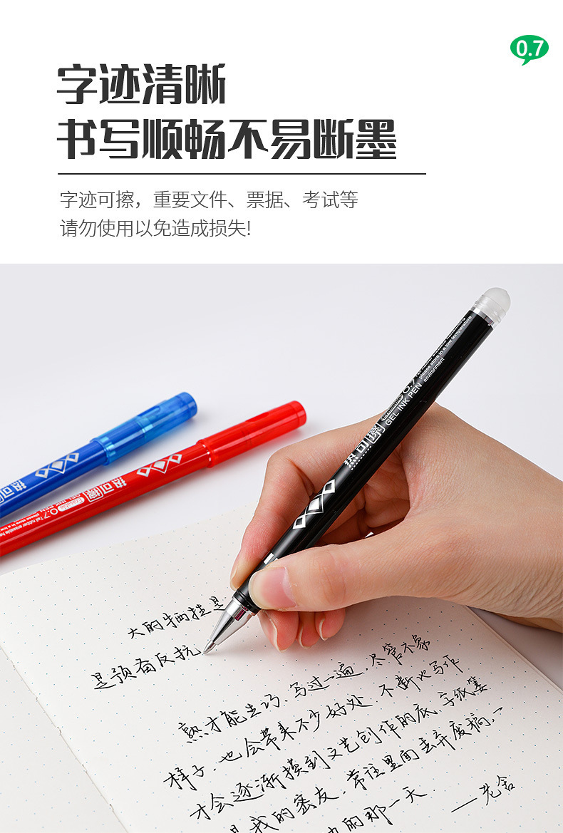 대용량 마이티 지울 수있는 젤 펜 0.7m 핫 그라인딩 지울 수있는 워터 펜 환경 친화적 인 빨간색 파란색 검정색 도매 퀴즈 펜스토어 가기