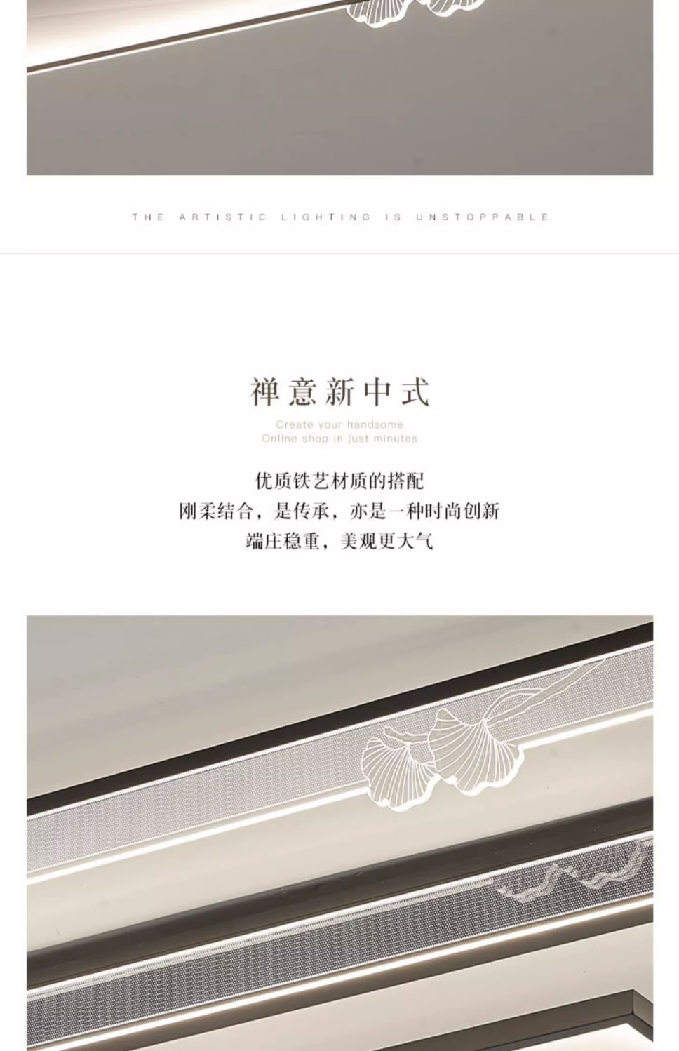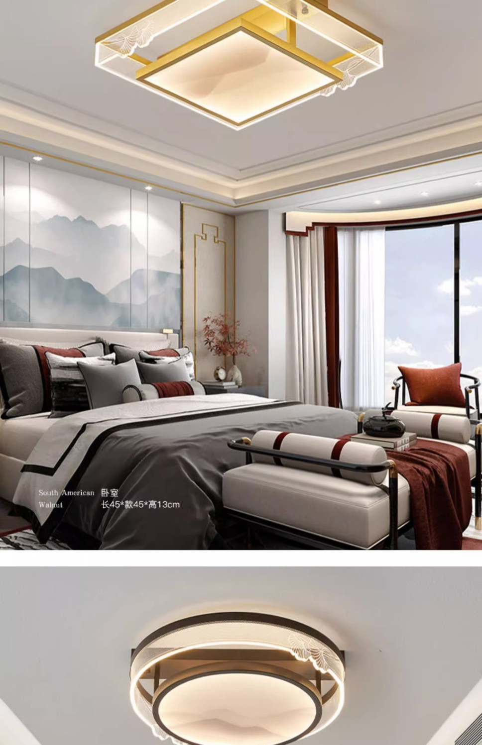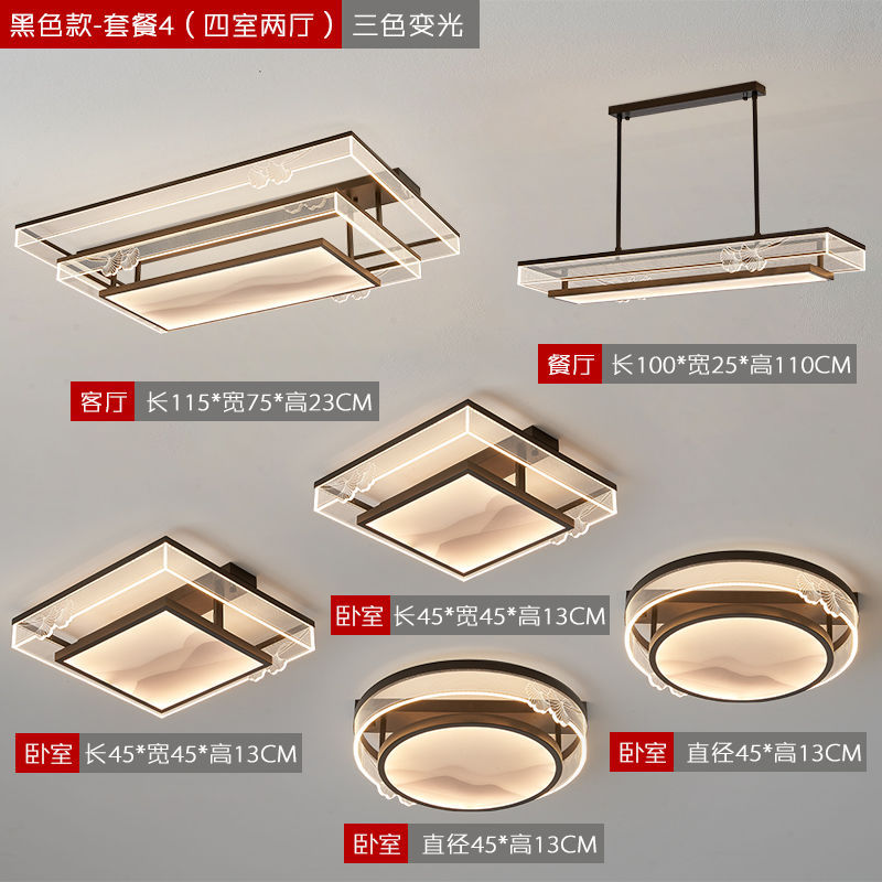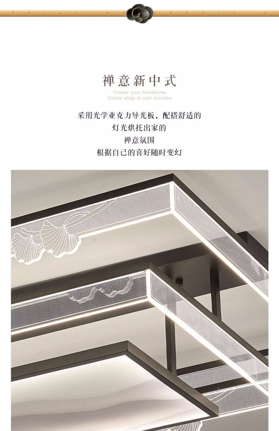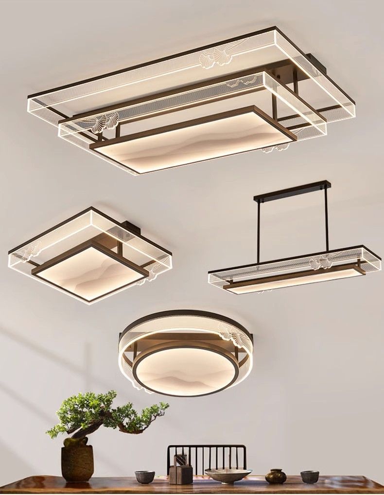 새로운 중국 스타일의 거실 램프, 분위기 있는 중국 스타일의 천장 조명 패키지, 직사각형 LED 찻집 레스토랑 현대 침실 램프