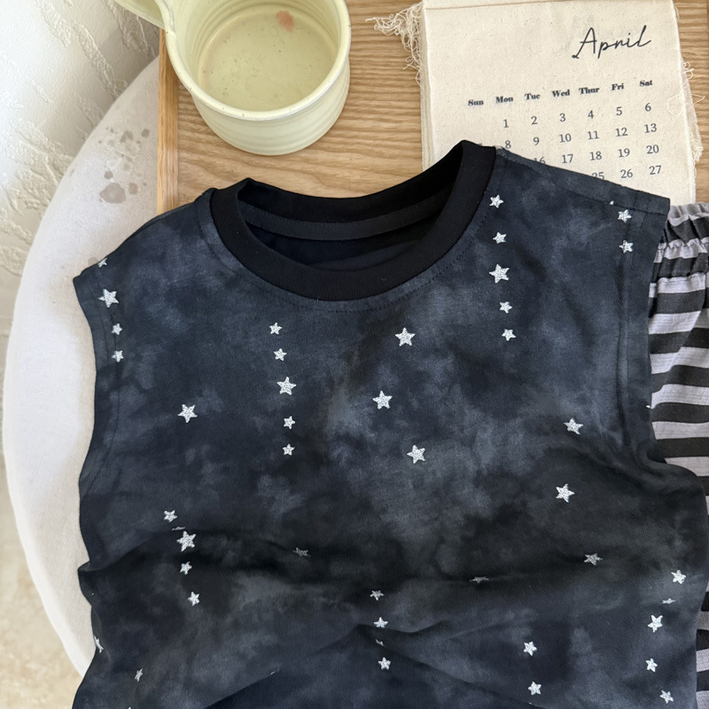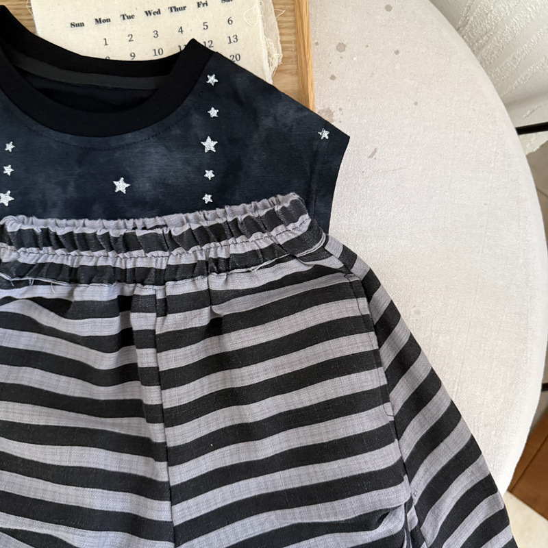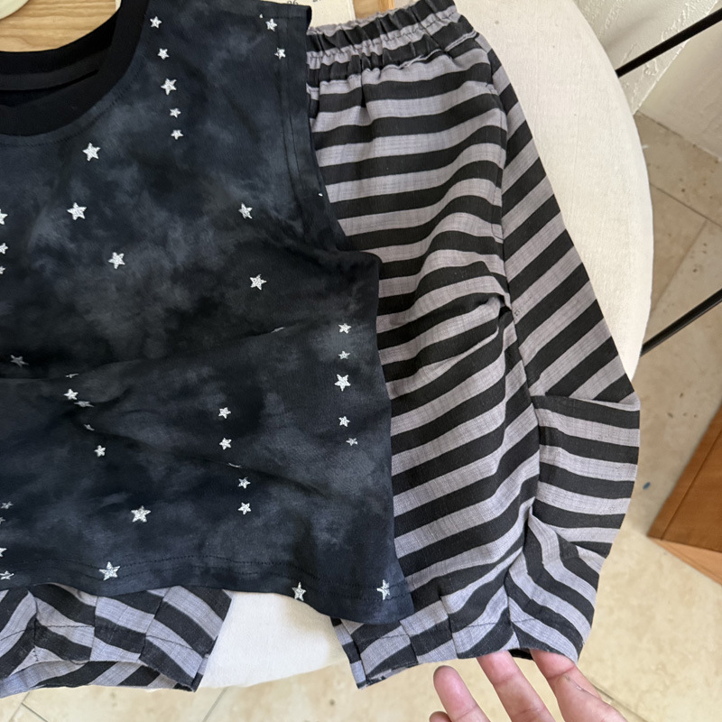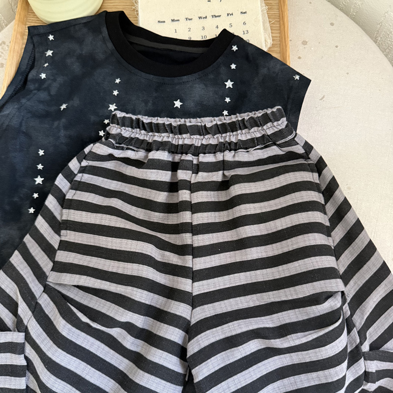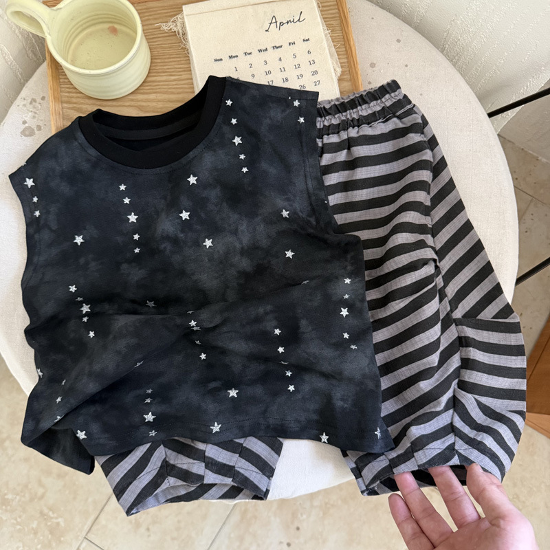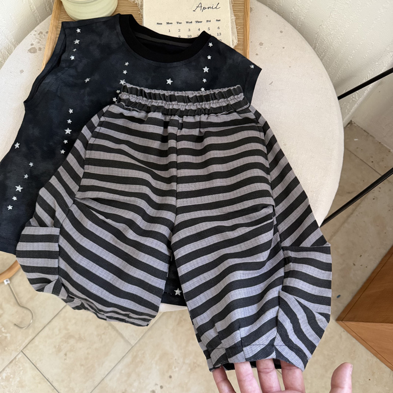 어린이 민소매 여름 원피스 2025 세트 어린이 한국식 민소매 탑 아기 느슨한 얇은 줄무늬 바지 투피스 세트