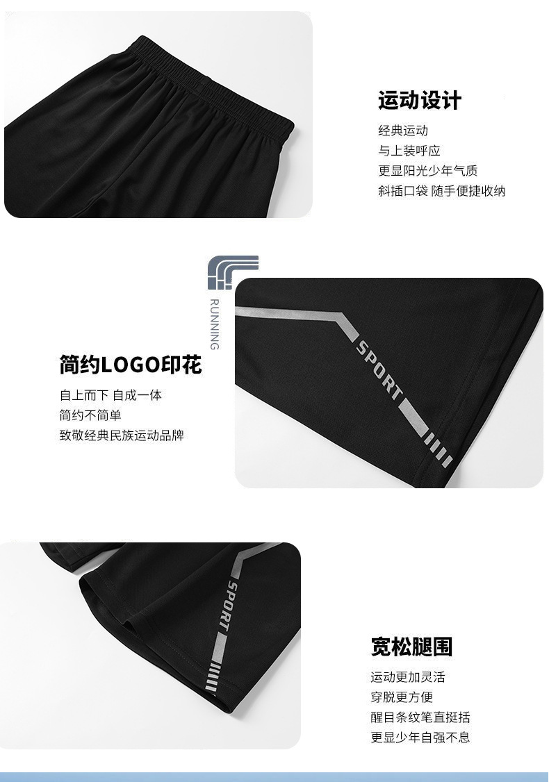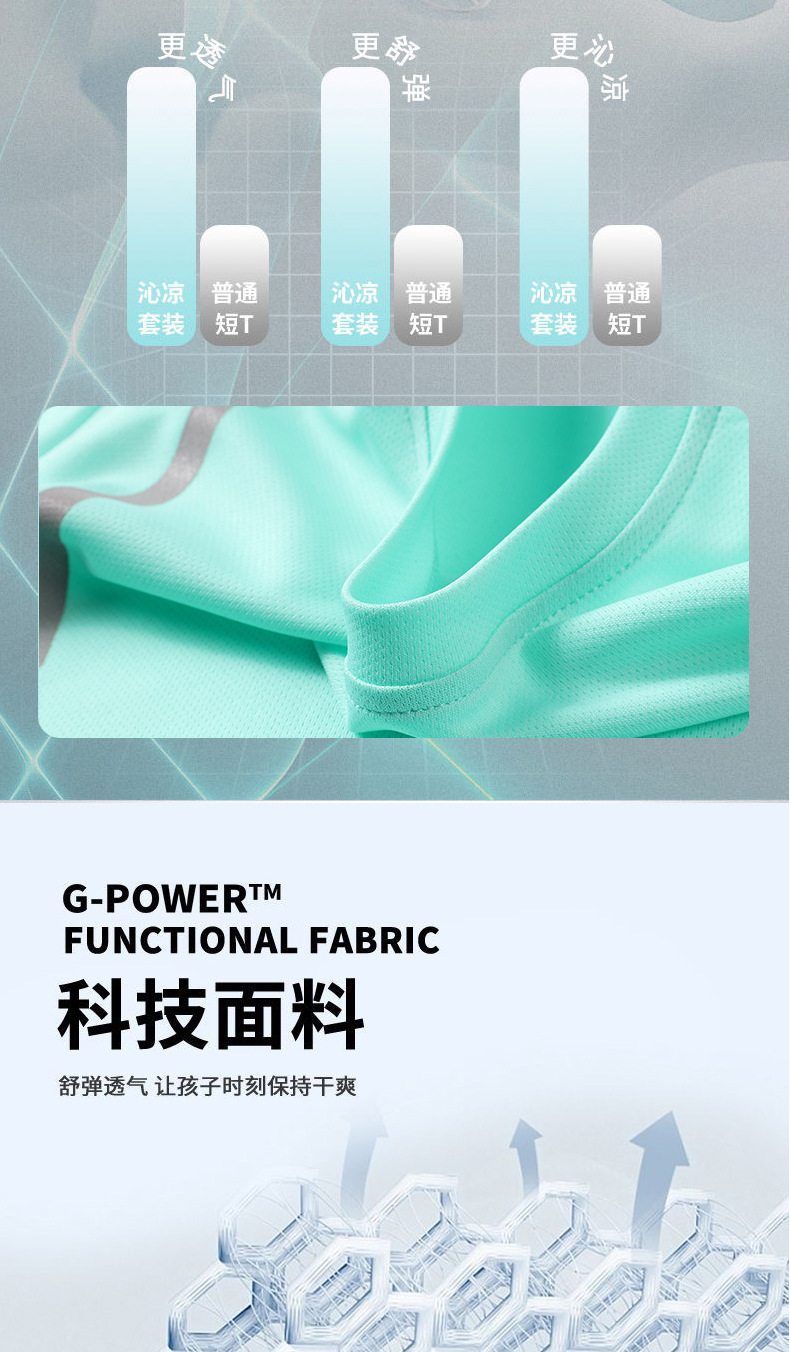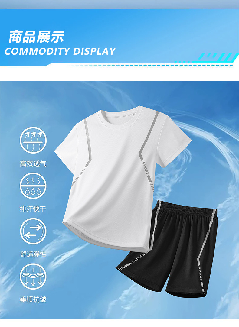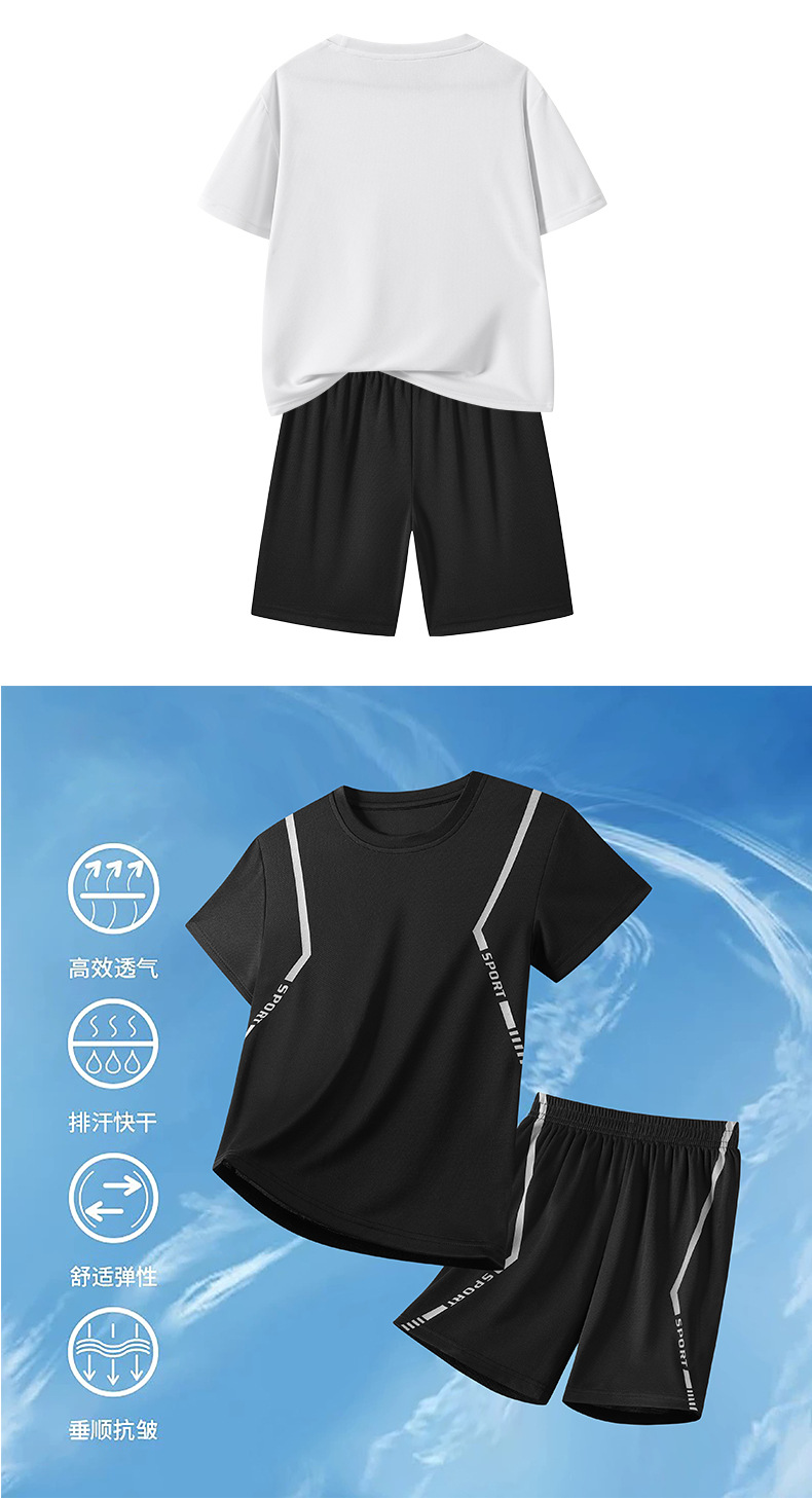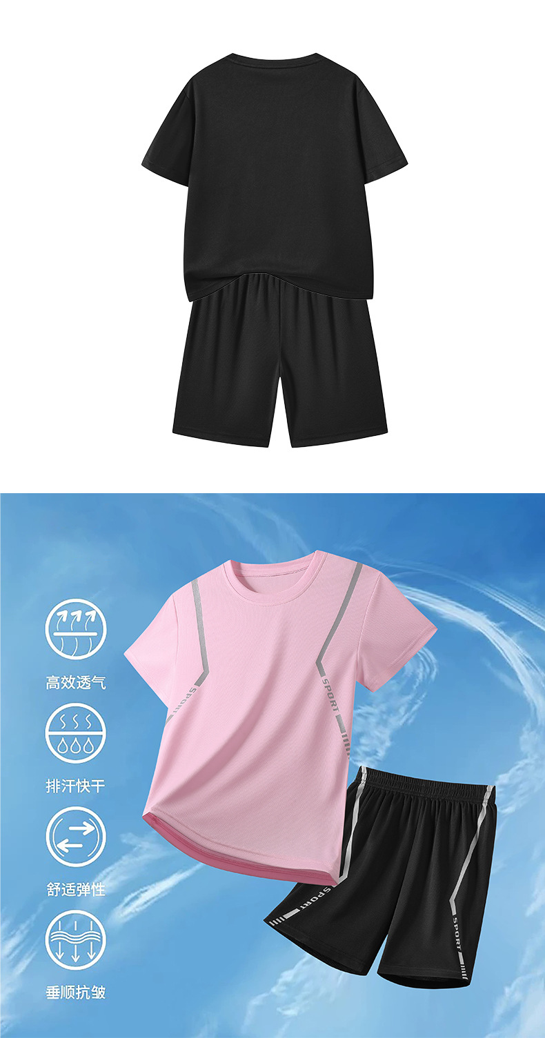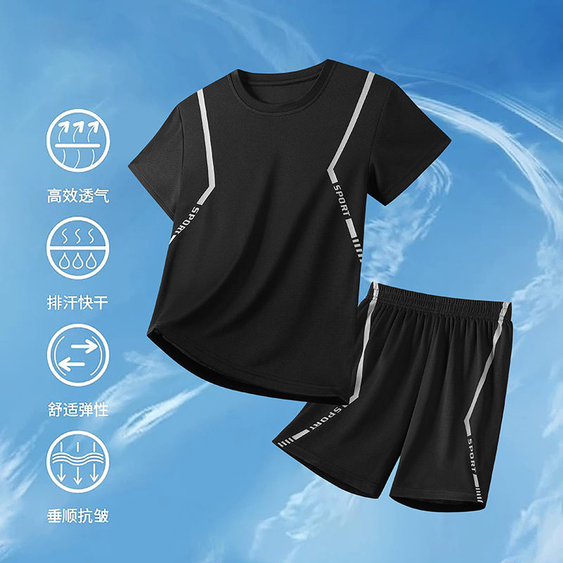 어린이 속건성 정장 여름 얼음 실크 통기성 운동복 소년과 소녀 라운드 넥 시원한 스웨트 셔츠 반바지 투피스 세트