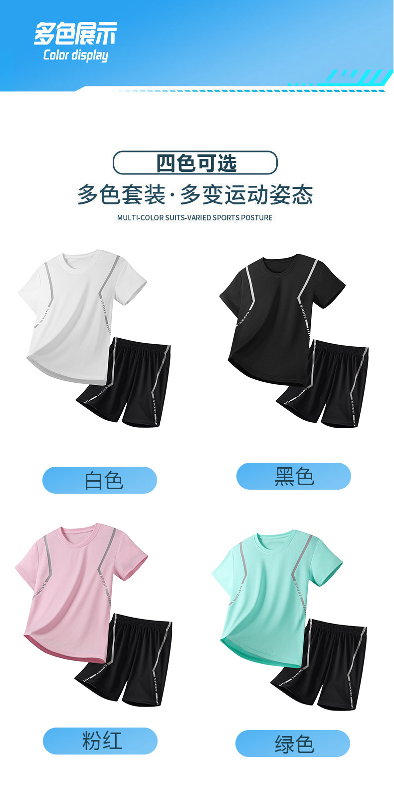 어린이 속건성 정장 여름 얼음 실크 통기성 운동복 소년과 소녀 라운드 넥 시원한 스웨트 셔츠 반바지 투피스 세트스토어 가기