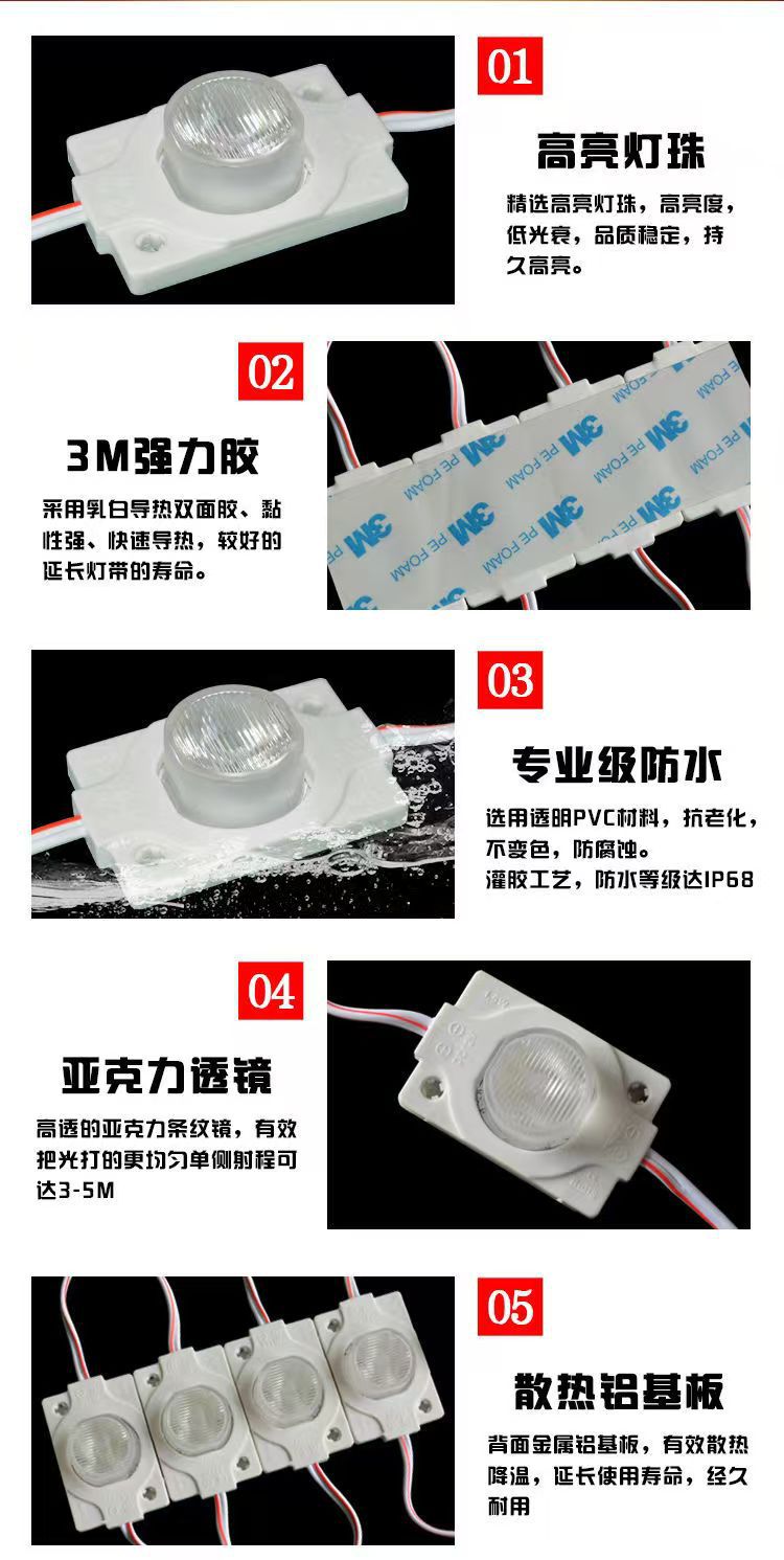 LED12V 단일 램프 측면 광원 모듈 블리스터 글자 발광 글자 광원 렌즈 방수 흰색 빨간색 노란색 녹색 파란색 분말