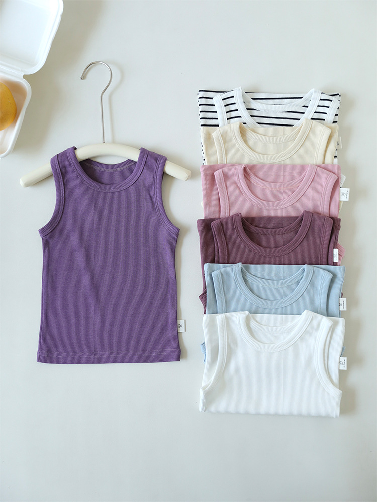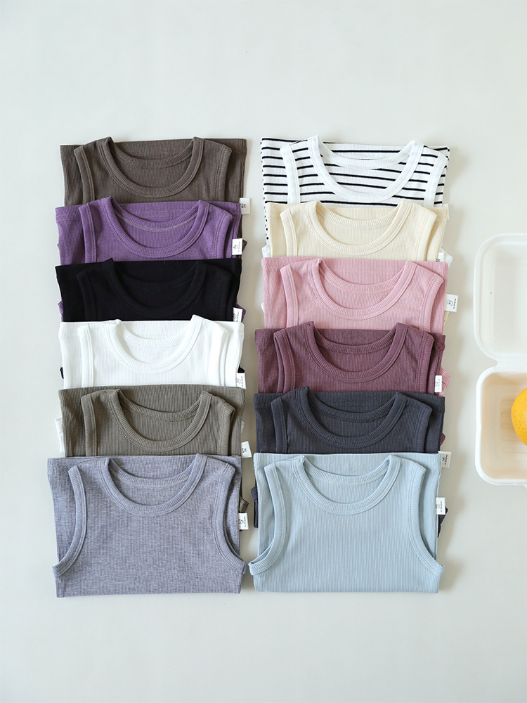 2025 어린이 스레드 조끼 Youcan 실크 코튼 얇은 둥근 목베이스 셔츠 소년 소녀를위한 아기의 민소매 티셔츠