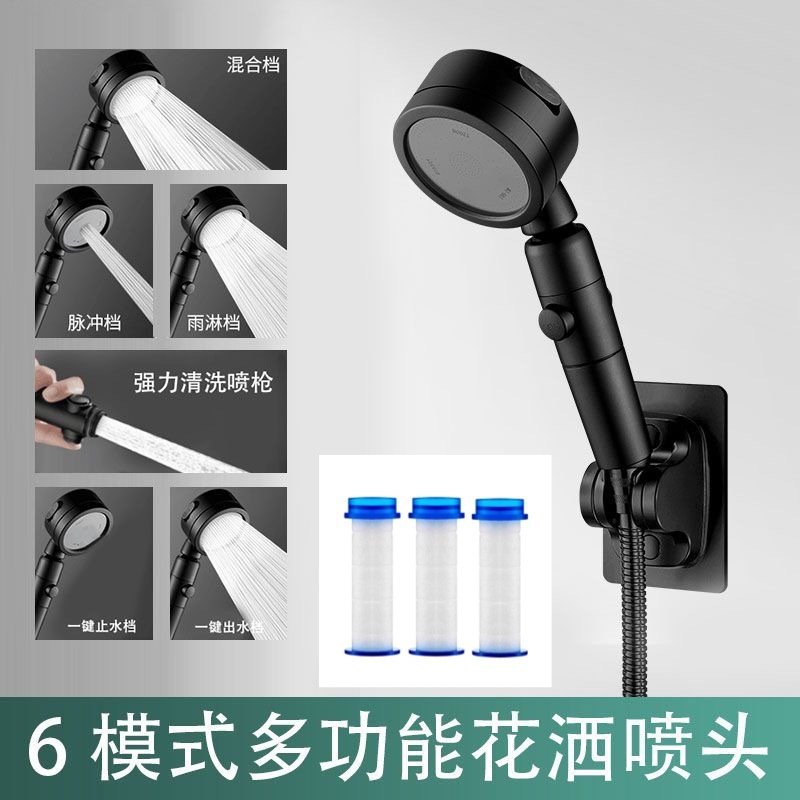 • 우아한 블랙 6단 모드 - 샤워 헤드 + 특수 필터 3개