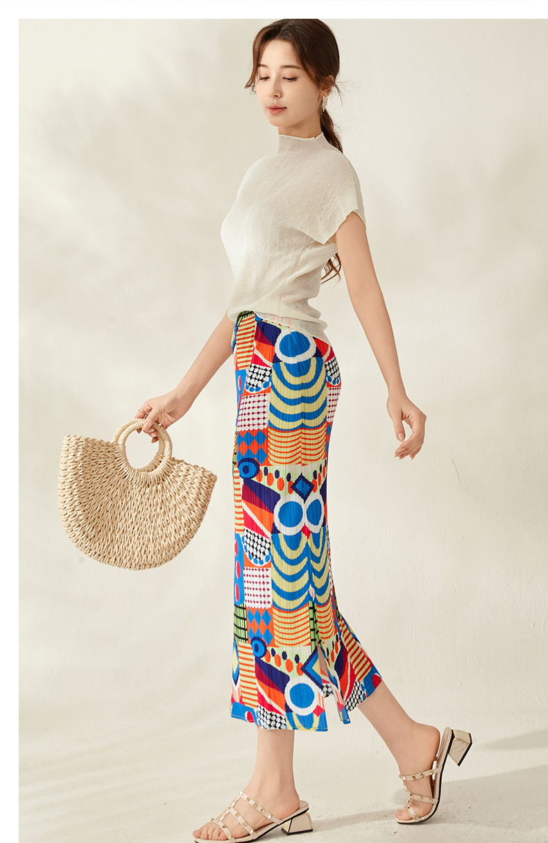 590 # 플리츠 스커트(슬릿 스커트) 주름 스커트 여성 여름 루즈하고 활용도가 높은 슬리밍 힙 스커트