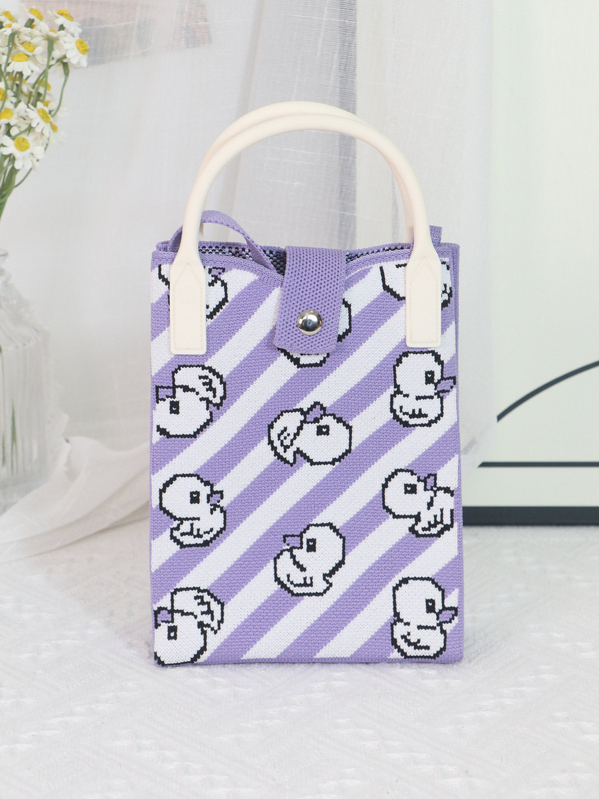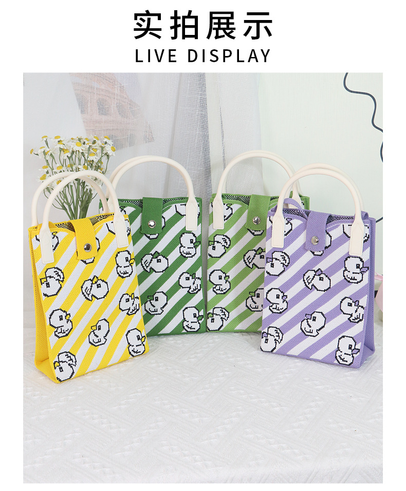 2025 새로운 패턴 만화 귀여운 핸드백 니트 가방 노란 오리 크로스 바디 가방 휴대용 귀여운 매일 어깨 가방스토어 가기