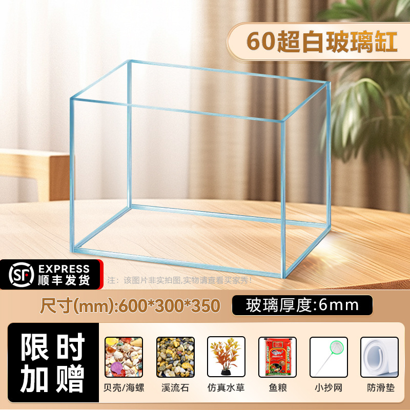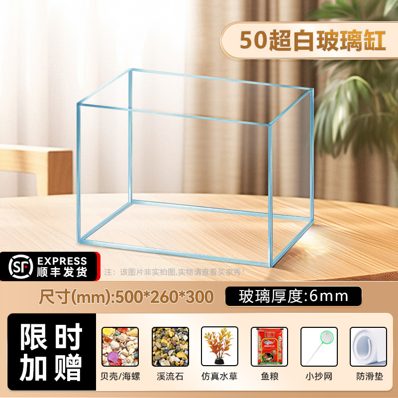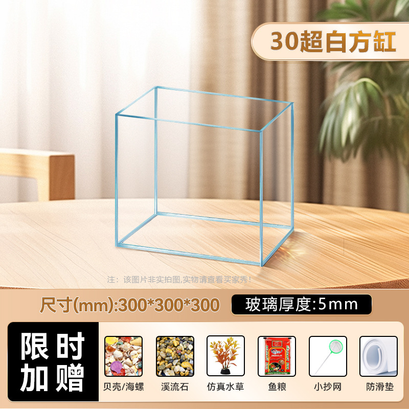 2025 새로운 슈퍼 화이트 어항 거실 작은 금 크리스탈 유리 광장 거북이 생태 스트림 탱크 홈 데스크탑 꽃 냄비스토어 가기