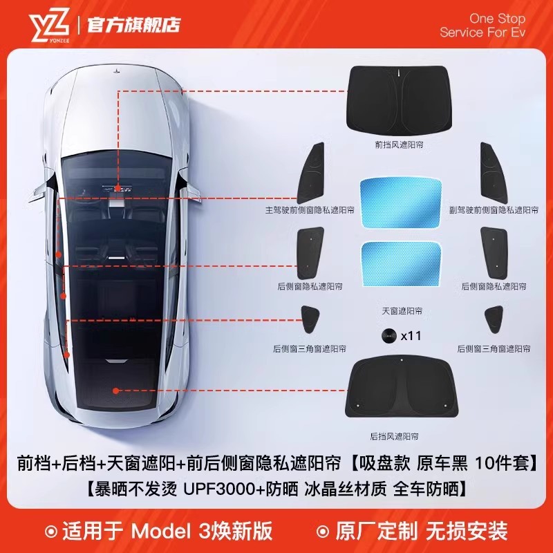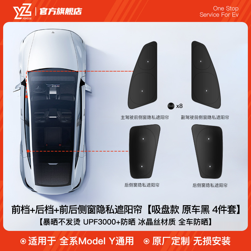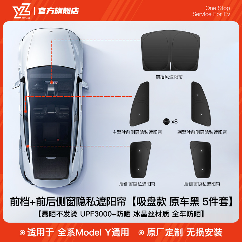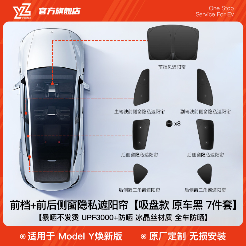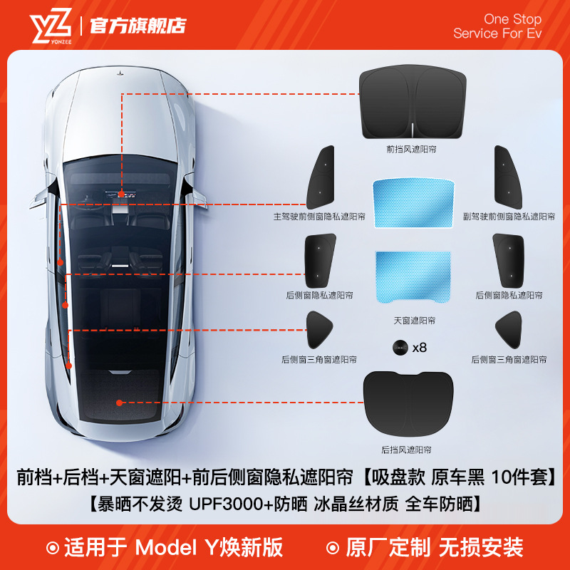 • Model Y 흡착컵 모델 리뉴얼 버전 [차량 전체 프라이버시 8종 세트] BSC 공간 냉각 - 비닐 쉐이딩 - 공식 상위 버전 UPF3000+