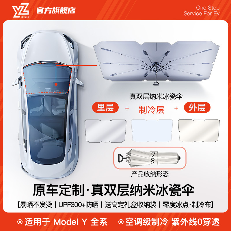 • 모든 모델 Y 진정한 이중층 고속 냉각 얼음 도자기 나노 파라솔 실리콘 우산 손잡이는 유리 스크린 원래 상단 액세서리를 손상시키지 않습니다.