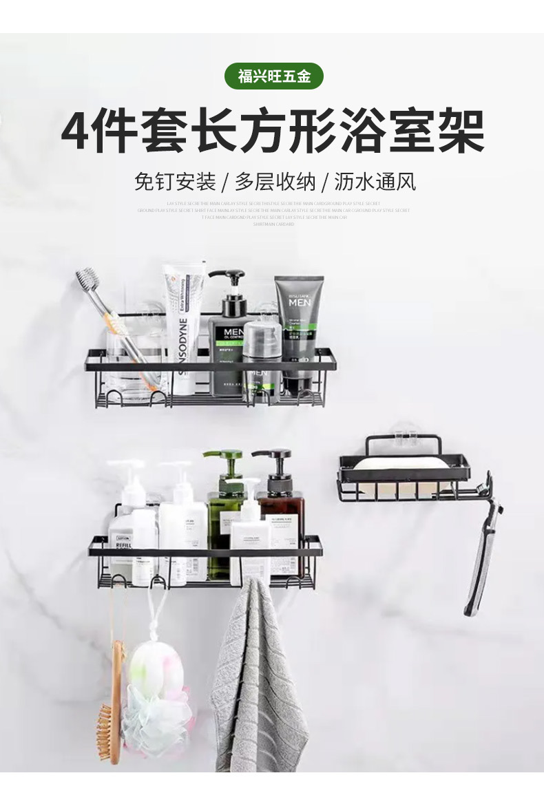 • 직사각형 욕실 선반 4개 세트