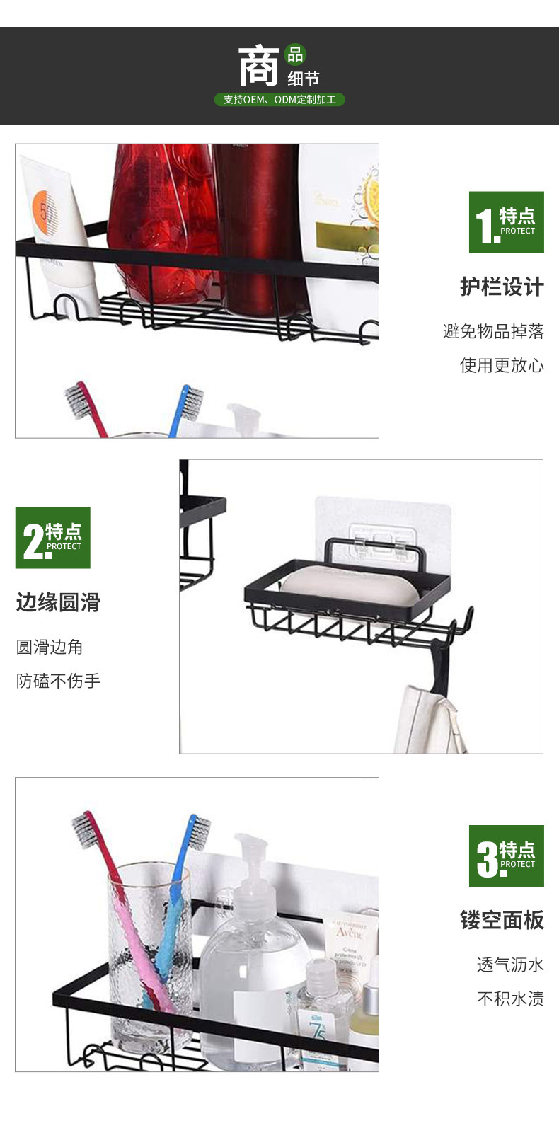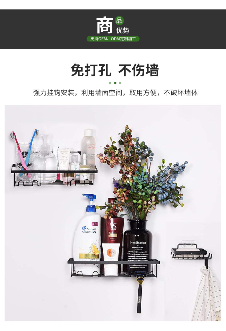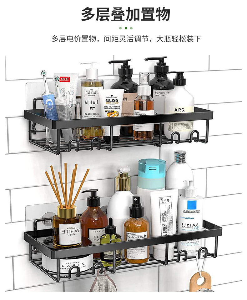 제조업체 맞춤형 가정용 욕실 벽걸이 형 직사각형 스토리지 랙 벽 펀치없는 욕실 스토리지 랙 세트스토어 가기