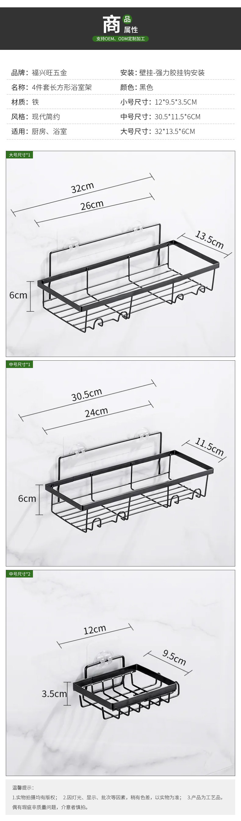 제조업체 맞춤형 가정용 욕실 벽걸이 형 직사각형 스토리지 랙 벽 펀치없는 욕실 스토리지 랙 세트