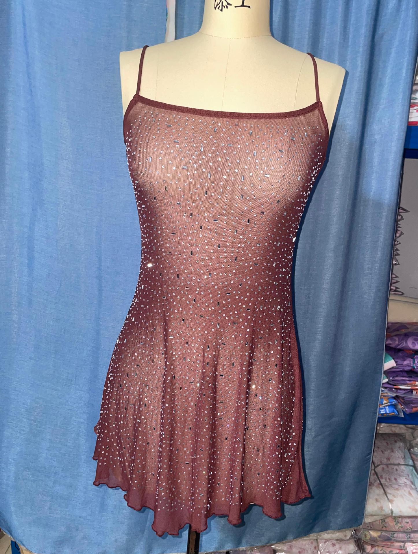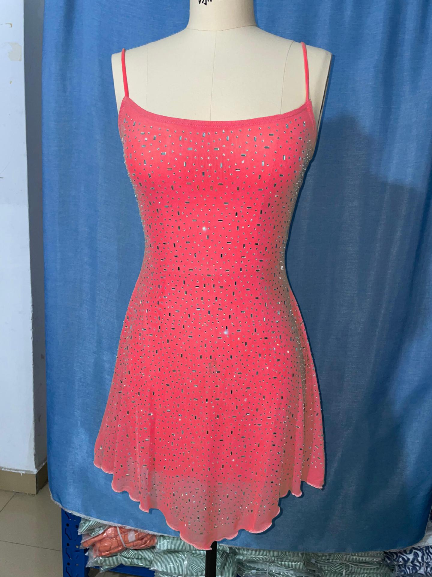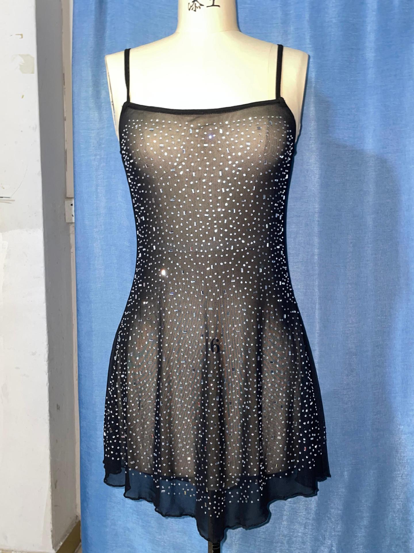 국경 간 폭발 여성 의류 아마존 AliExpress 독립 역 파티 핫 드릴링 반 관점 슬링 짧은 원피스