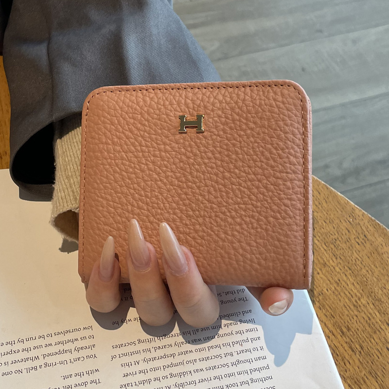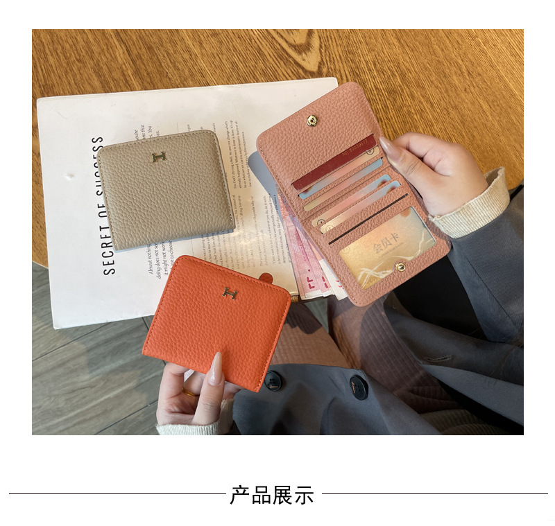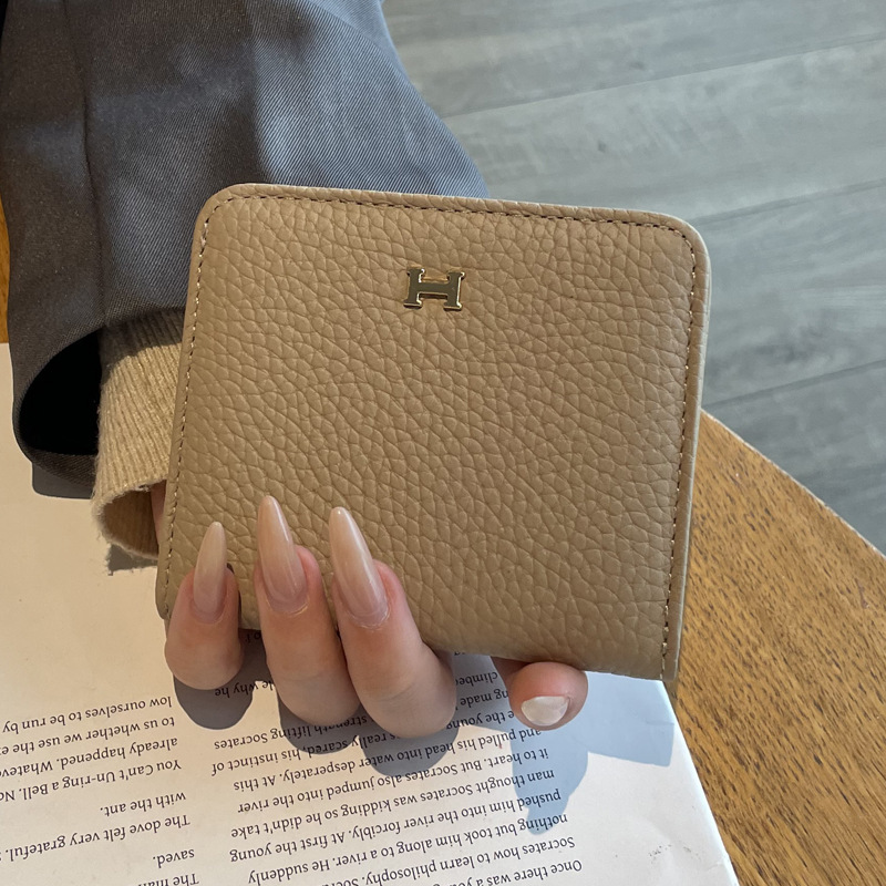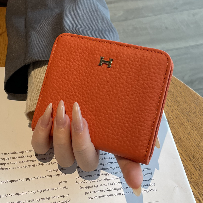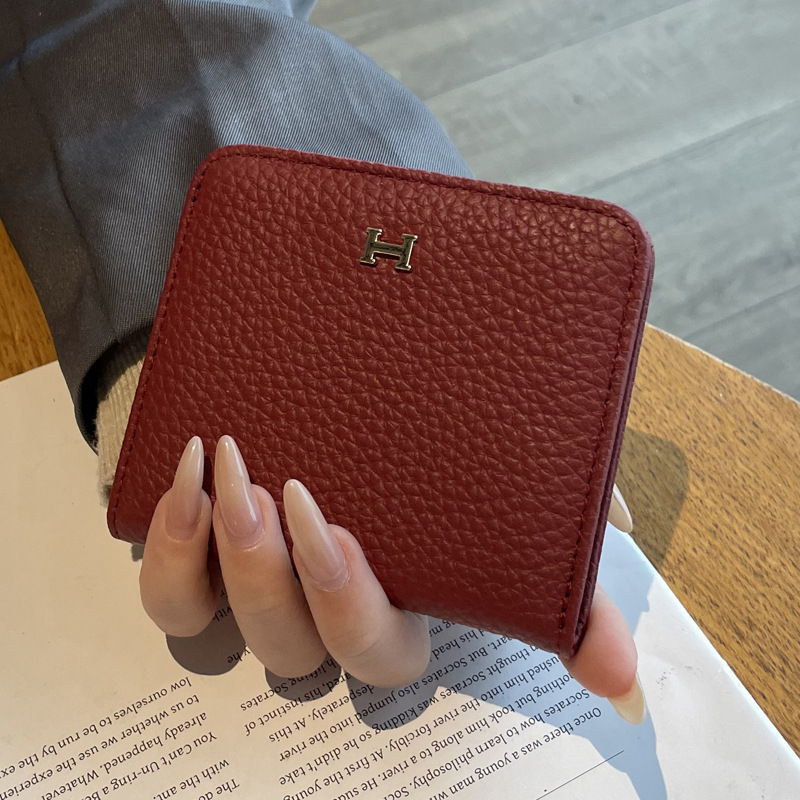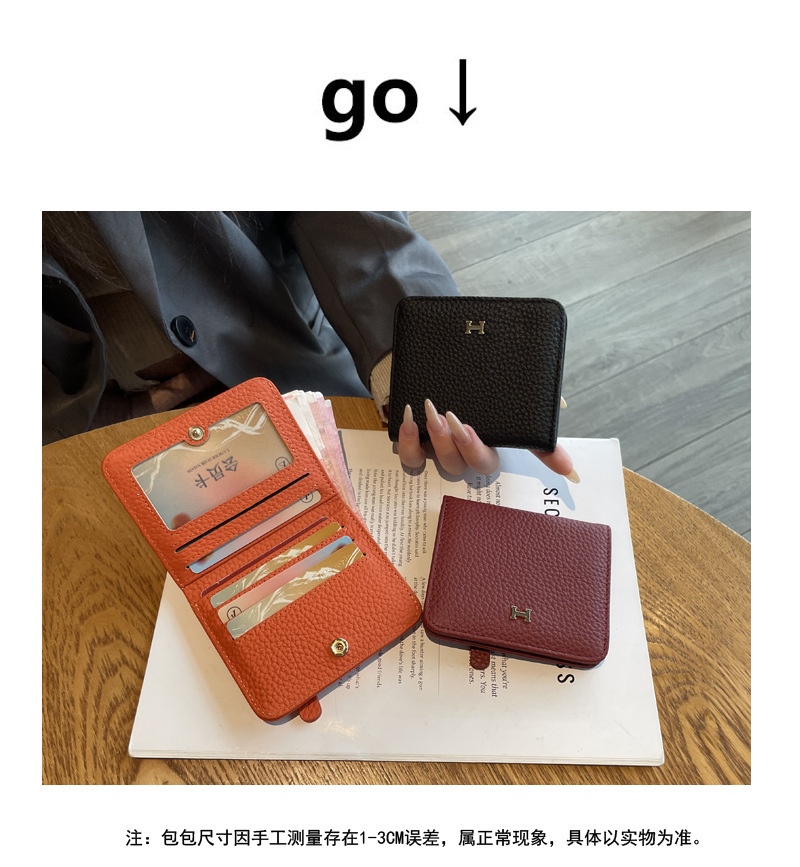 천연가죽 여성용 소형 지갑, 1층 소가죽, 심플하고 독특한 디자인, 짧은 카드홀더, 인스타 스타일 일체형 카드케이스스토어 가기