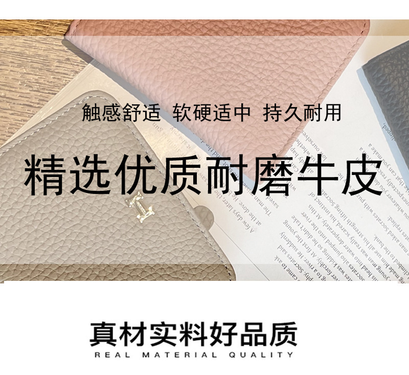 천연가죽 여성용 소형 지갑, 1층 소가죽, 심플하고 독특한 디자인, 짧은 카드홀더, 인스타 스타일 일체형 카드케이스