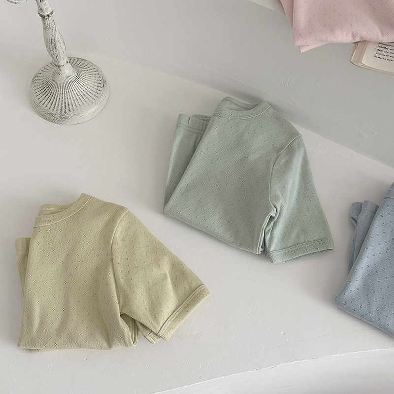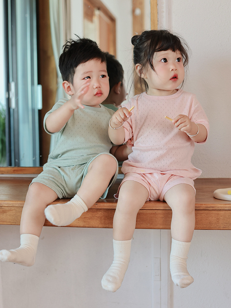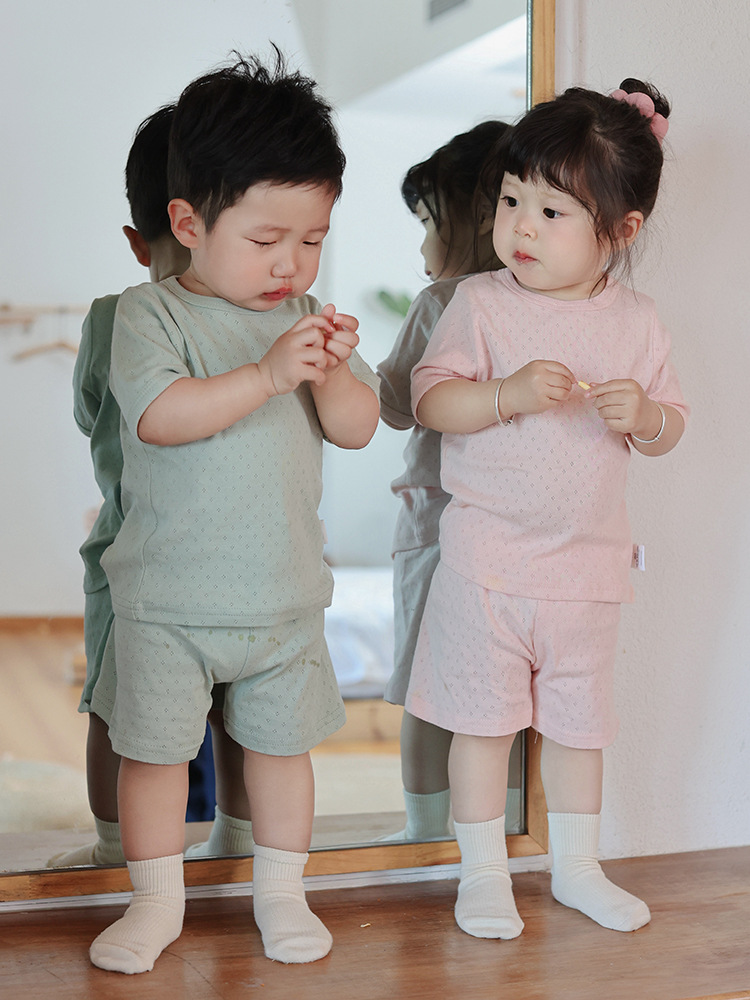 어린이 홈 옷 2025 여름 얇은 아기 잠옷 순수한면 카테고리 간단한 단색 에어컨 옷 여성용 잠옷스토어 가기