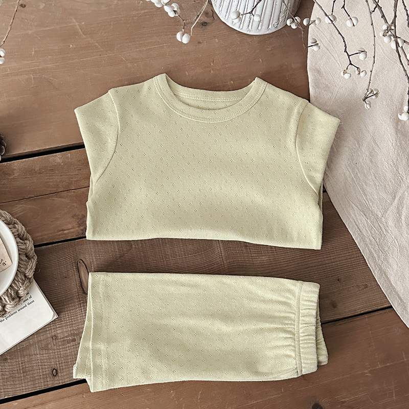 어린이 홈 옷 2025 여름 얇은 아기 잠옷 순수한면 카테고리 간단한 단색 에어컨 옷 여성용 잠옷