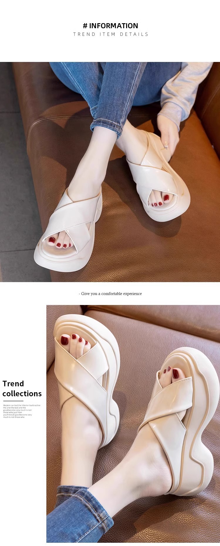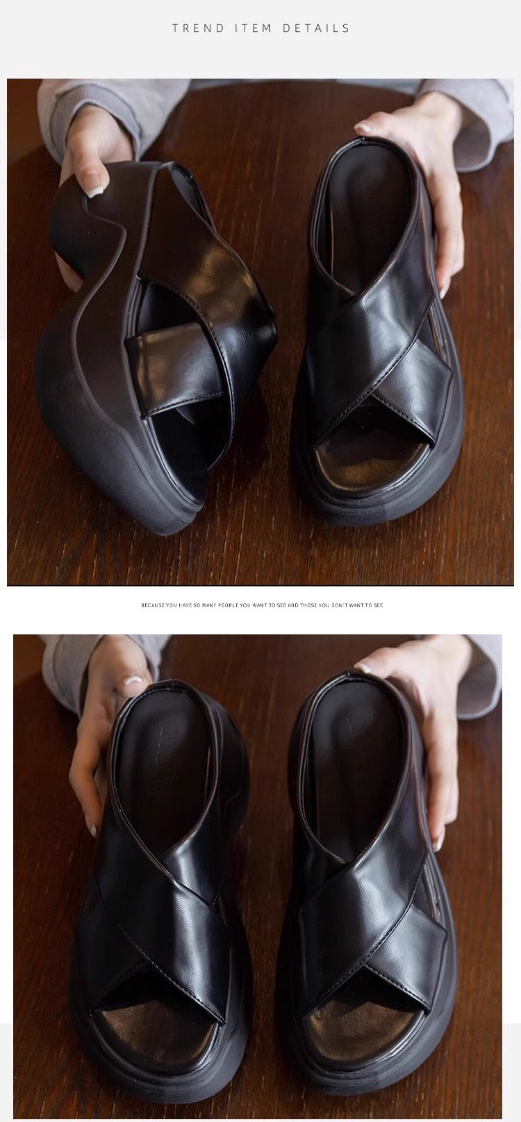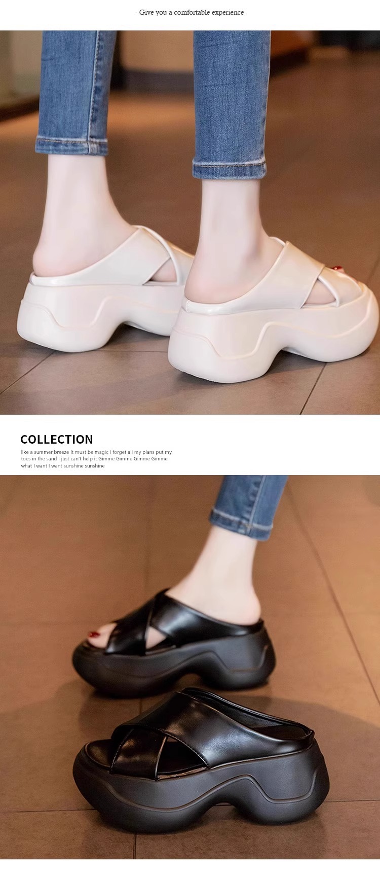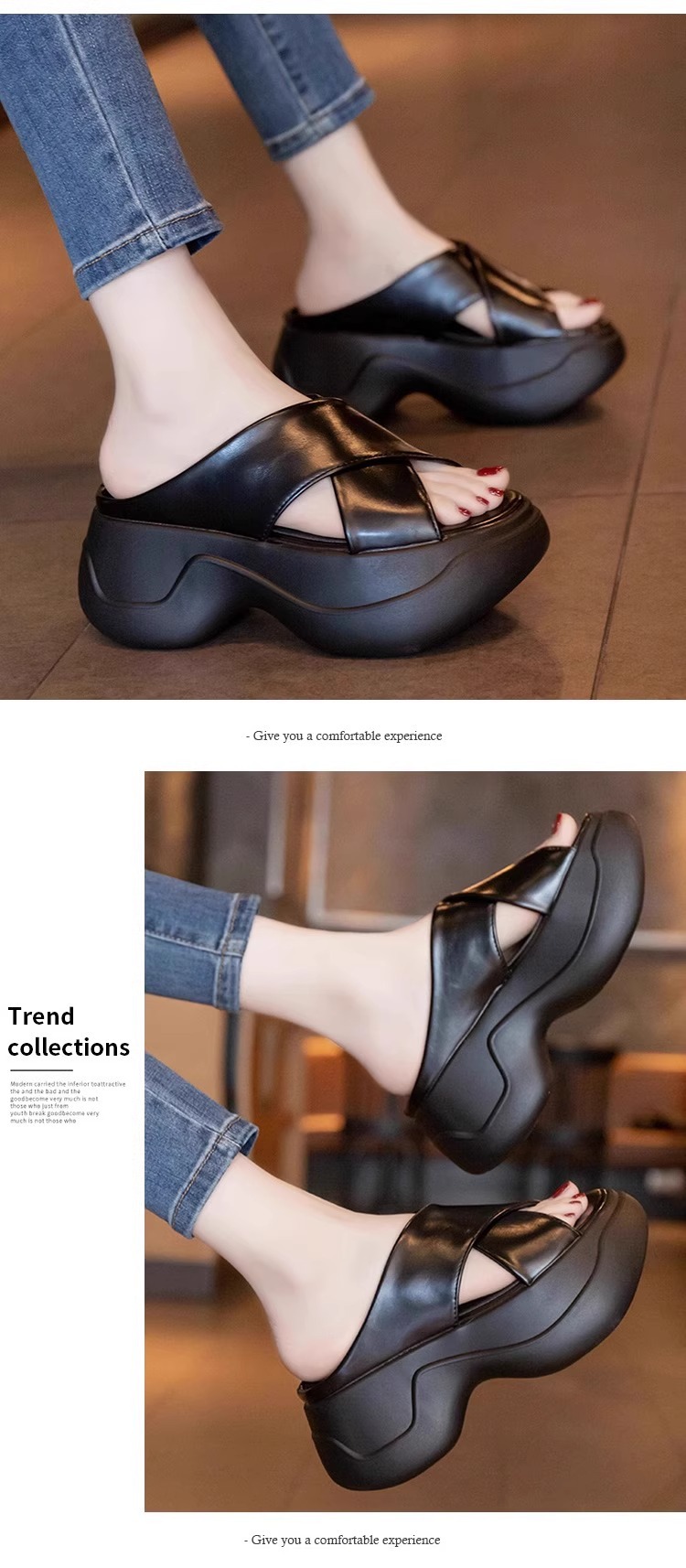 Cowhide 버전 ~ 두꺼운 바닥 강화 슬리퍼 여성의 2025 년 여름 새로운 하이 엔드 샌들과 슬리퍼 두꺼운 바닥 샌들과 슬리퍼스토어 가기