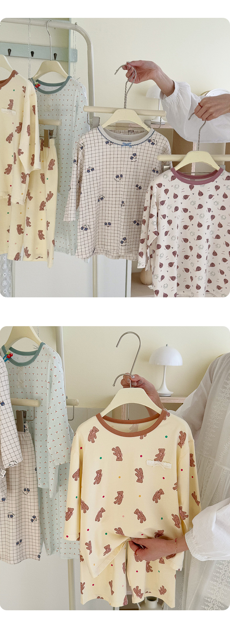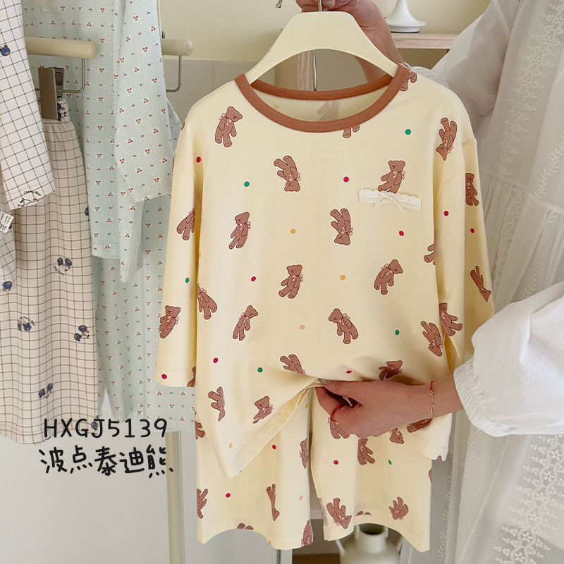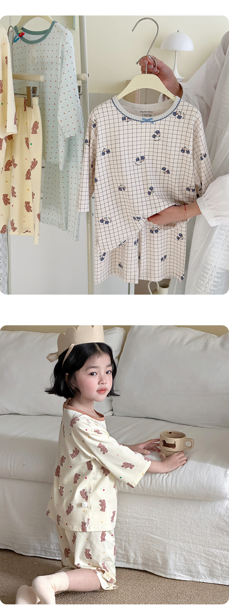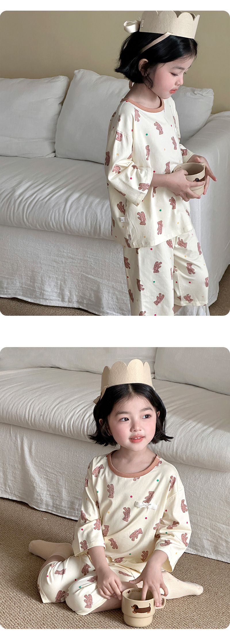 검은 카페 곰 둥근 목 만화 전체 인쇄 실크면 클래스 어린이 홈 옷 캐주얼 소녀 잠옷 세트 외부 착용스토어 가기
