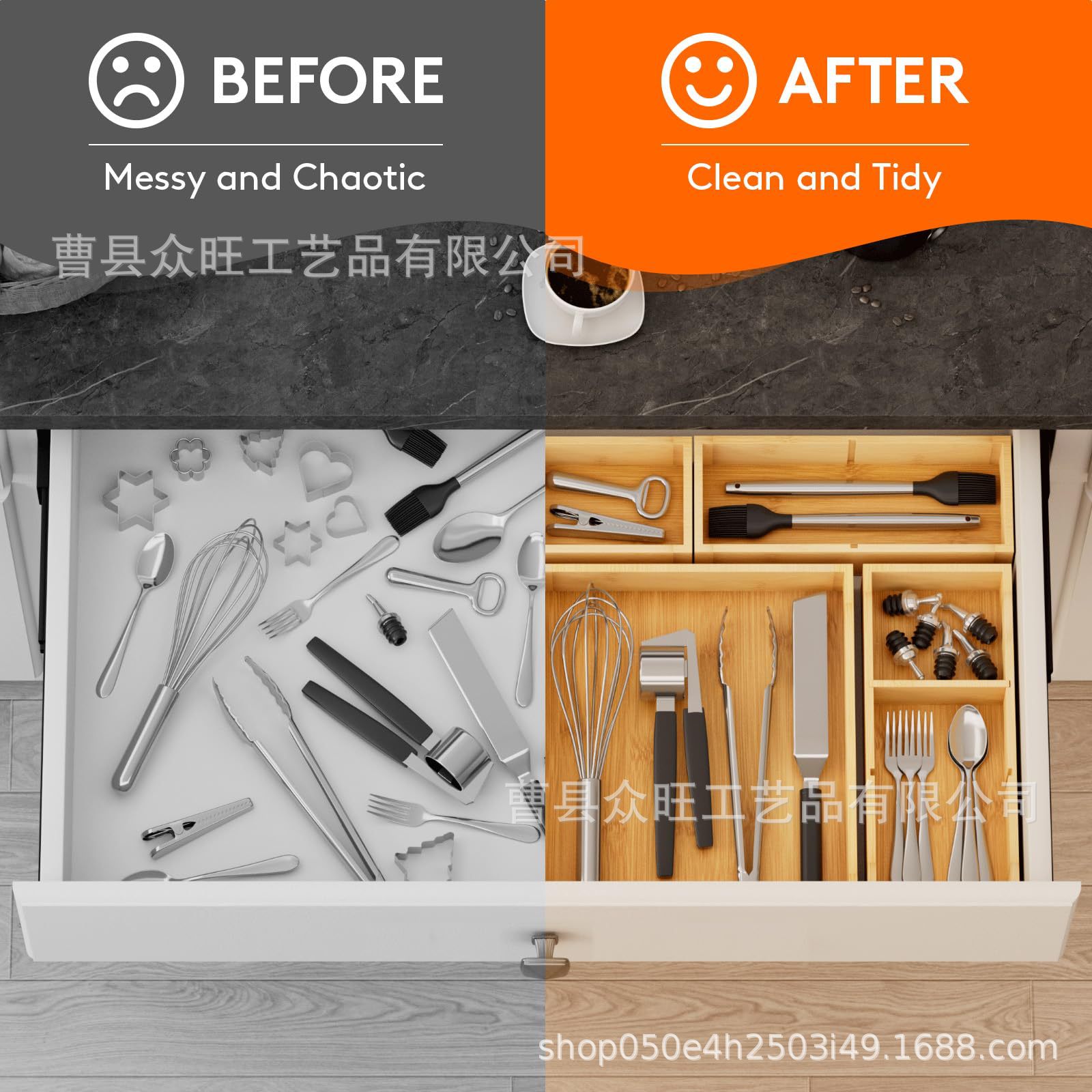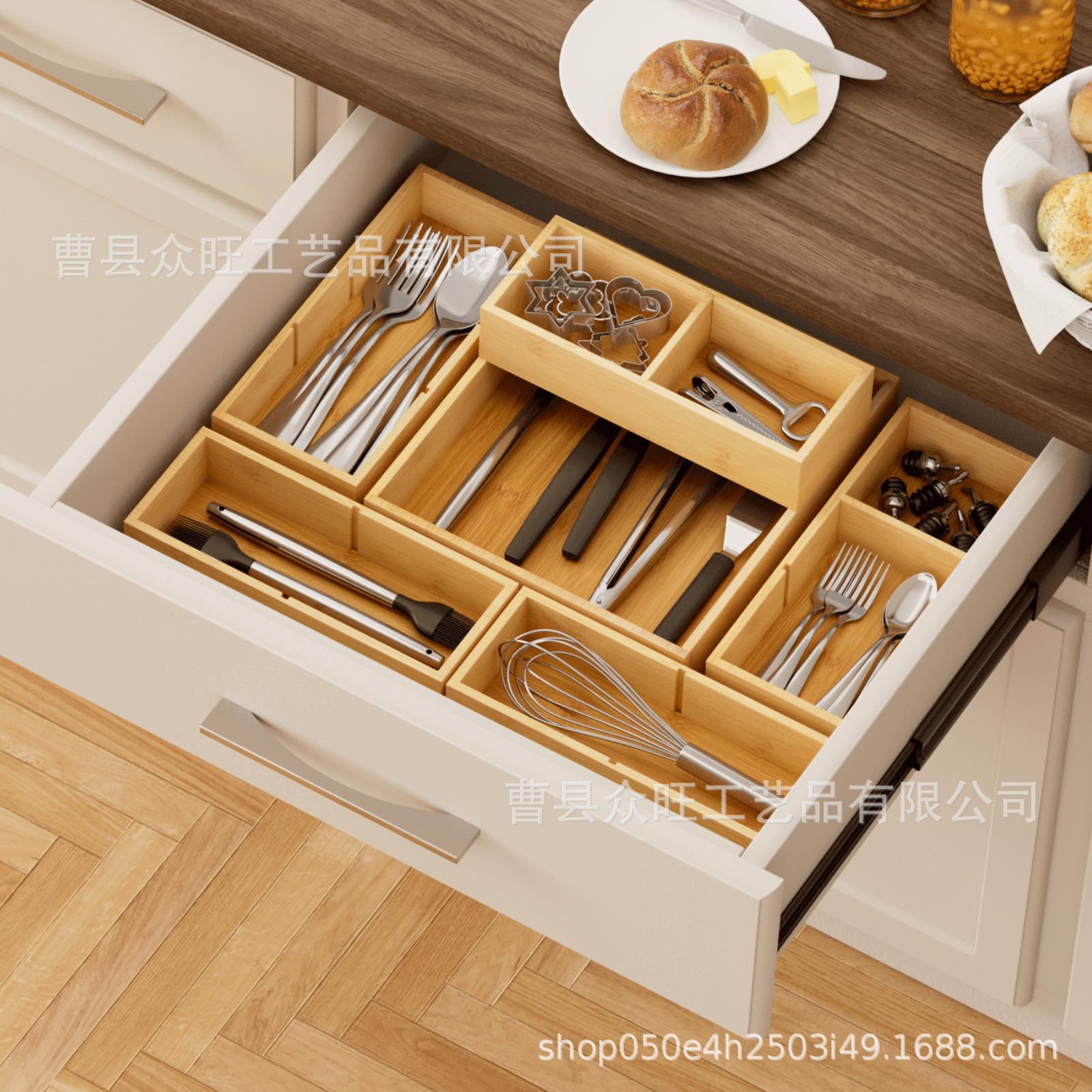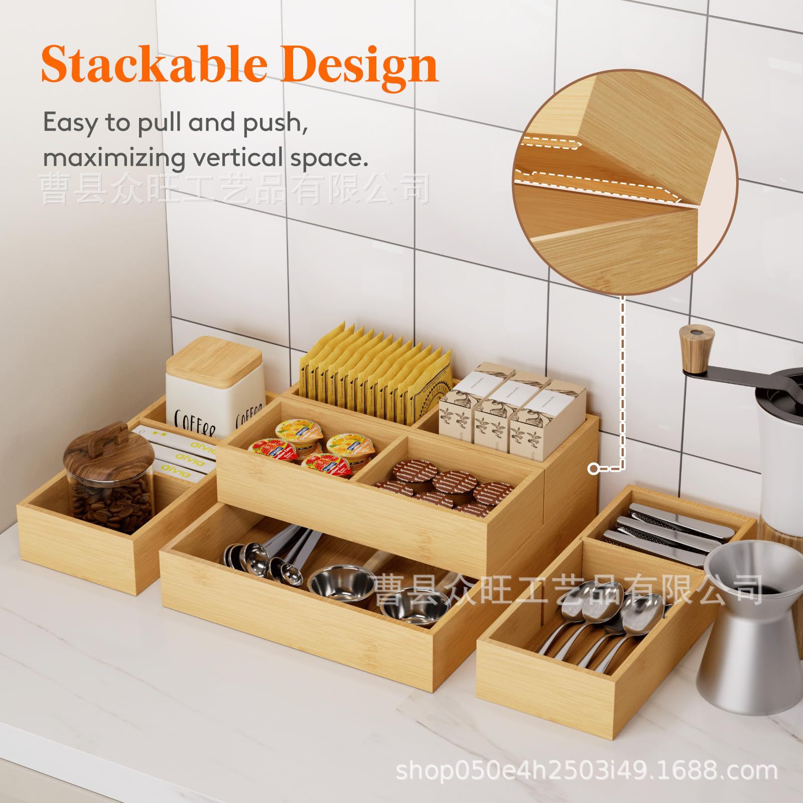 나무 서랍 주최자 대나무 나무 쌓을 수있는 보관 상자 데스크탑 조절 가능한 주최자 주방 식기 보관 상자스토어 가기